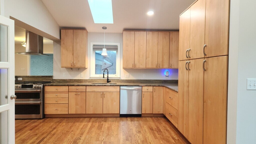 Fantastic park-like location along tree lined GW Parkway or Ft Hunt Rd, less than a mile to Ft Hunt Shopping area and 10 minutes to Old Town Alexandria. This is a beautifully remodeled home in a peaceful setting with wonderful views in all directions. Modern and bright thanks to the vaulted ceilings, skylights and open floorplan. There are so many special features to appreciate such as the wood ceilings, HW flooring, sitting room addition, interior brick walls, double sided fireplace, large windows and even a detached 2 car garage. The lower level features a rec room and storage space. The fenced in back yard and flagstone patio will offer a perfect spot for private relaxation and entertainment.