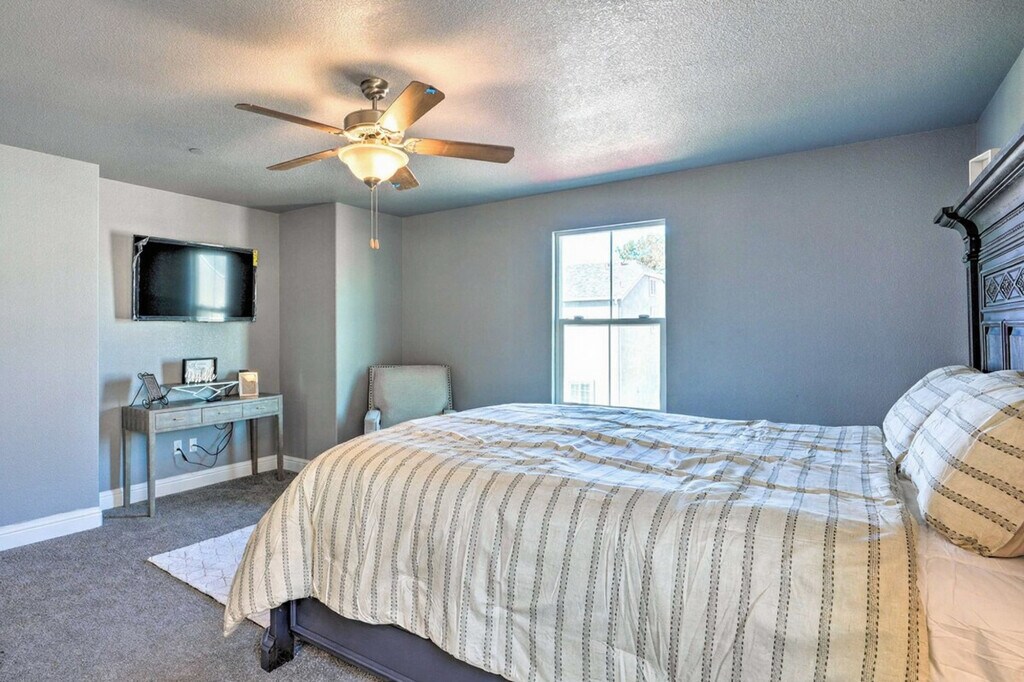 Feel at home in this spacious Sacramento house, offering 4-bedrooms and 2.5-bathrooms. This house is located just a short drive from downtown. This house features 2 Smart TVs, premium cable channels, surround sound, a dining table, a gas fireplace, ceiling fans, a walk-in closet, books, board games, a fenced yard, and a charcoal grill. The fully equipped kitchen includes a breakfast bar, cooking basics, a wine cabinet, a microwave, a coffee maker, a coffee grinder, dishware and flatware, a Crockpot, and a high chair. Also provided are complimentary toiletries, towels and linens, a washer and dryer, central heating and A/C, a hair dryer, and an iron and board. This property is pet friendly with a $100 fee for a maximum of 2 pets. Situated a short drive from downtown, this house gives you easy access to museums, the Sacramento Zoo, and the Golden 1 Center. After treating yourself to a day out sampling local wineries, come home to this haven. All bedrooms are located on the 2nd floor and require stairs. No events, parties, or large gatherings are allowed. Smoking is prohibited. [SI]