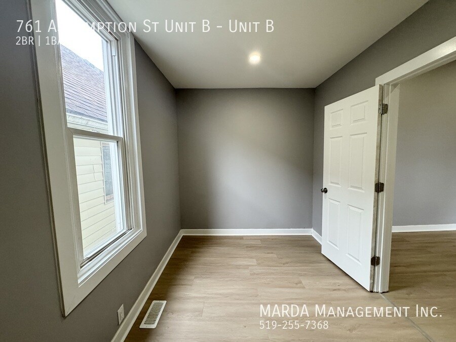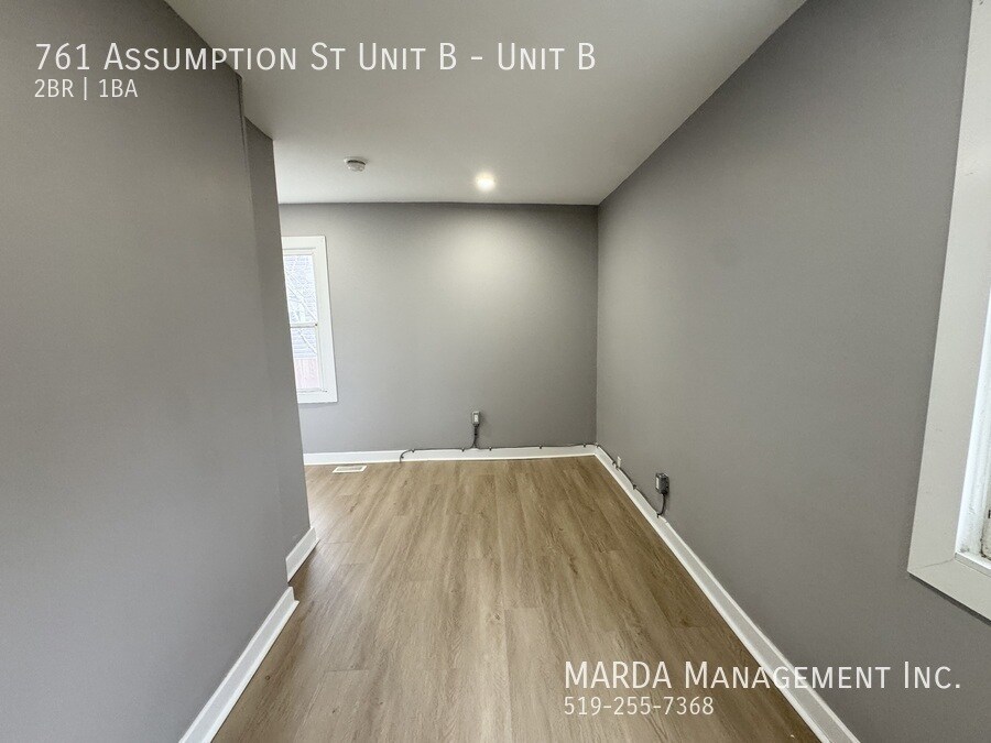 Welcome to 761 Assumption Unit 2, a bright and fully updated main floor apartment located at the rear of the building for added privacy and quiet living. This unit is steps away from Glengarry Ave, Wyandotte St, Windsors beautiful Riverfront, Caesars Windsor, major bus routes, restaurants, cafe's, shopping, and the University of Windsor and St. Clair College downtown campus making it ideal for students or working professionals. Inside, you'll find new vinyl flooring, fresh paint, and an open, comfortable layout. The updated kitchen features white cabinets, a modern subway tile backsplash, and new appliances, including a fridge and stovetop. The living area offers good natural light and enough room for a cozy lounge setup or small dining area. The unit includes two spacious bedrooms, each with a full closet. The newly updated bathroom features a sleek shower with a sliding glass door, shelving for storage, and a clean, modern look. One of the best features of this unit is the in-suite stackable washer and dryer, giving you the convenience of doing laundry right at home. Outside, Unit 2 tenants have access to driveway parking. Tenants are responsible for hydro, gas, lawn care, and snow removal. First and last months rent and a credit check are required. One-year minimum lease. Professionally managed by MARDA Management, offering 24/7 maintenance support with a live agent and easy, secure rent payment options. Call MARDA MANAGEMENT today at or email to schedule your viewing! Freshly Painted Laminate Flooring No Smoking Allowed Pet Friendly
