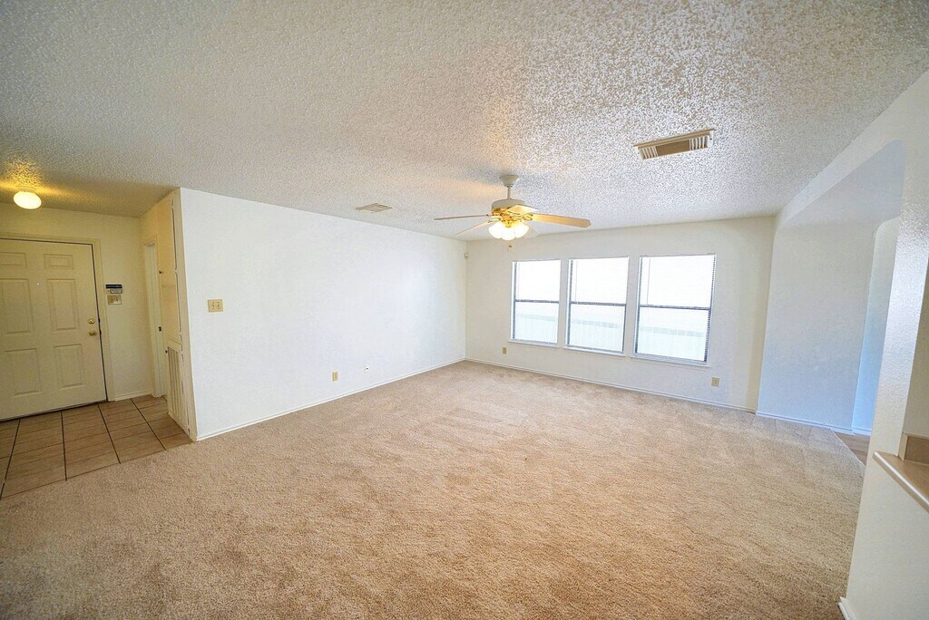 Discover this move-in ready 3-bedroom, 2-bathroom home in the desirable Northampton subdivision of Converse, TX. As you enter, you'll be welcomed by a spacious living room with newly installed carpet and vinyl plank flooring throughout. The eat-in kitchen is ideal for your morning routine and seamlessly connects to the living area, making it perfect for entertaining. The kitchen comes fully equipped with appliances, and a washer/dryer is also included, so you can settle in without any hassle. The master bedroom is generously sized and features a full en-suite bathroom with double vanities and a tub/shower combo. Both additional bedrooms are roomy and equipped with ceiling fans for extra comfort. Conveniently located near Loop 1604, Interstate 35, and just a short drive from Randolph AFB. This home is a must-see!