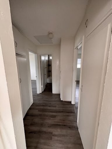 UPSTAIRS UNIT2 bedroom, 1 bath. Single garage space (shared 1/2 of 2 car garage). Washer/dryer hookups in shared laundry room, all new hard flooring and all new paint.
