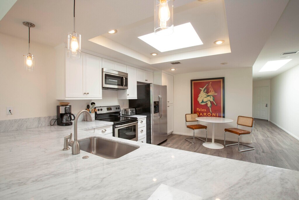 This home is an extended Jacaranda floor plan that is now 3 bedrooms and approximately 1650 sq. ft. The home was recently painted. It is empty now,no furniture! Pictures are from Aug. 2022. The condo is now empty. Nice open kitchen with white cabinets and quartz counters. Newer lights and mirrors were installed within the last 2 years the bathrooms. This condo is on one of the most desirable streets in PVCC,Impatiens Circle and it has a south-facing fairway patio. It's on the 9th hole tee box of the Championship course. Palm Valley CC has 46 swimming pool,a huge clubhouse,2 Ted Robinson golf courses,tennis and pickleball courts and a fitness center. This is a wonderful resort like community. Come take a look at your next home! This is a long term lease,1 year or more.