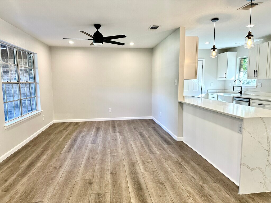 Welcome to a beautifully updated rental home located in one of Pensacola’s most convenient and desirable areas. Situated just minutes from NAS Pensacola, this property is perfect for military personnel, defense contractors, or anyone seeking quick access to the base while staying close to all the best Pensacola has to offer. Enjoy being a short drive from Perdido Key’s sugar-white beaches, downtown Pensacola’s vibrant dining and nightlife, Big Lagoon State Park, golfing, boating, and countless outdoor activities that make this area such a sought-after destination. Property Features Step inside to find a stylish, modern interior designed for comfort and functionality: * Beautiful luxury vinyl plank flooring throughout * Updated interior paint colors that create a clean, contemporary feel * Open-concept living area ideal for entertaining or relaxing * Quartz countertops and stainless steel appliances in the bright, updated kitchen * Modern light fixtures and recessed lighting throughout the home * Updated bathrooms with fresh finishes * Washer and dryer located in the garage for convenience * Privacy-fenced backyard that provides separation from an in-law unit, offering both privacy and flexibility Location Highlights * Minutes from NAS Pensacola * Close to Perdido Key Beaches and Big Lagoon State Park * Easy access to shopping, restaurants, parks, and entertainment * A quick drive to Downtown Pensacola, Blue Angels practice shows, hiking trails, marinas, and fishing spots This home blends modern updates, convenient amenities, and an ideal Pensacola location. Perfect for anyone wanting comfort, style, and proximity to the best of the Gulf Coast.