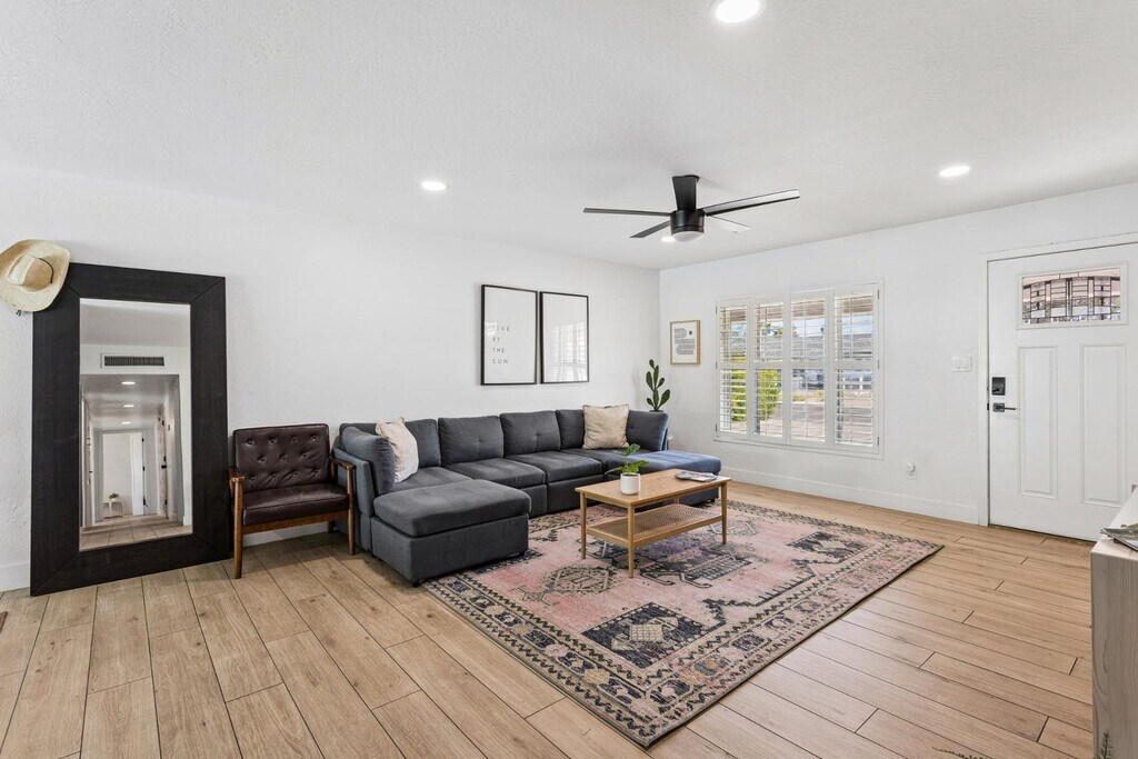 Set in the heart of Old Town Scottsdale,this 4 bedroom home blends clean updates with a location that puts everything within reach. Inside,the layout opens easily from the living area into a bright,refreshed kitchen with white cabinetry,stainless steel appliances,and ample prep space,creating a natural flow for both daily living and hosting. The backyard is designed for Arizona living,featuring a pool,covered patio for shaded dining,and a turf putting green that adds a layer of recreation and charm. Whether it is a quiet morning outside or an evening with friends,the space offers flexibility and ease. Positioned just minutes from Scottsdale Stadium,Civic Center,and some of the citys best dining,shopping,and entertainment,this home delivers both lifestyle and convenience in one of Scottsdales most connected neighborhoods.