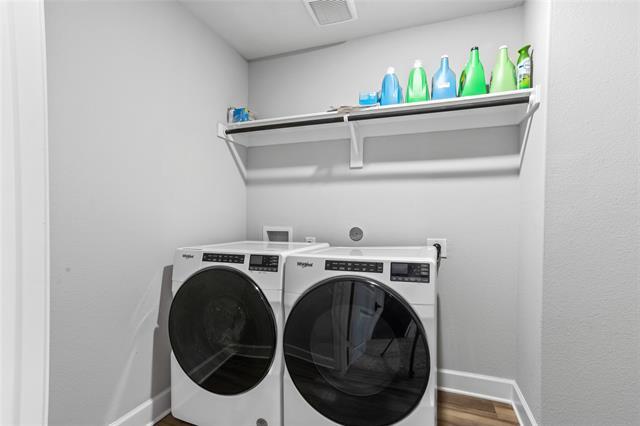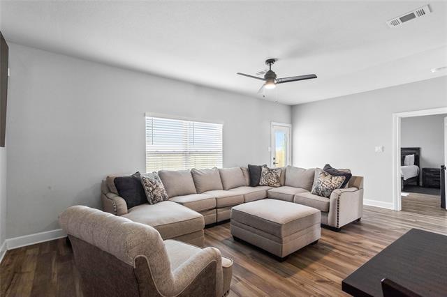 Spacious newer build tucked away in back of neighborhood with Gorgeous Views of the surrounding area. Right in the center of the metroplex with easy access to I-30 and major surrounding areas. Home was only used on a limited basis as a weekend getaway spot and feels practically brand new. 5 Large bedrooms boast tons of space and walk in closets. Upstairs offers secondary living or game room area as well as large utility room for full size washer and dryer. Full bathroom upstairs has dual sinks as well as built in shelves for storage. 2-inch faux wood blinds throughout. Refrigerator included. Owner pays HOA dues. House is also listed for sale MLS #20983315.