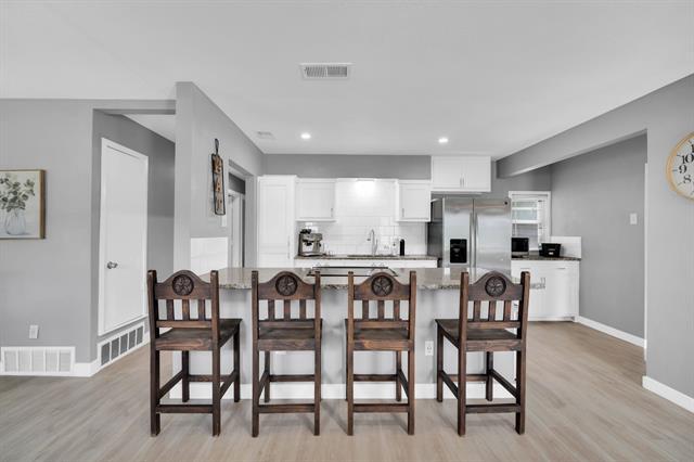 Welcome to this little gem that checks many boxes! The location is excellent- nestled in an established neighborhood yet also conveniently close to I-35 and I-20 for quick and easy access to all DFW has to offer! Several local highlights are especially near for endless fun and good times- downtown Dallas, the Bishop Arts, and Deep Ellum. The property itself is on over a quarter of an acre with a spacious backyard, large rear porch, and mature trees ready to be enjoyed. Inside the home you find an inviting open concept highlighted by many updates all throughout- large kitchen island, granite kitchen counters, luxury vinyl plank flooring, spacious living room and dining room space. Other recently redone features include interior paint, tile around shower, and bathroom tub. The layout and the outdoor amenities make entertaining easy inside or out! Excellent storage shed in the back! Come see today!