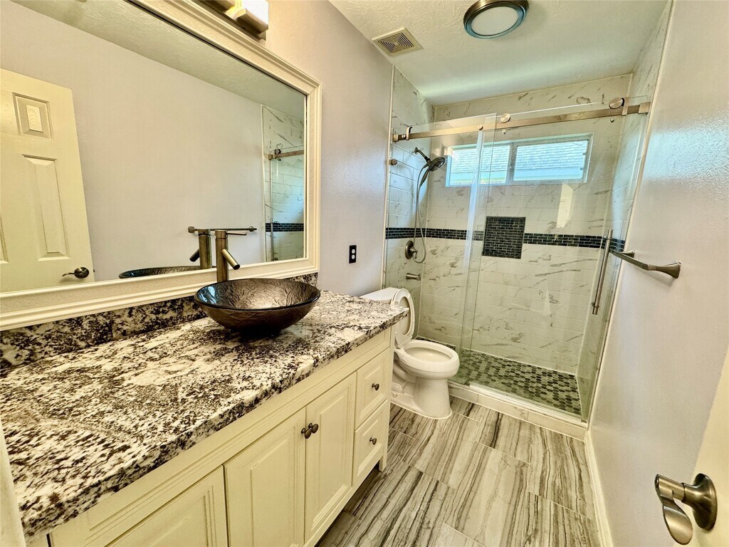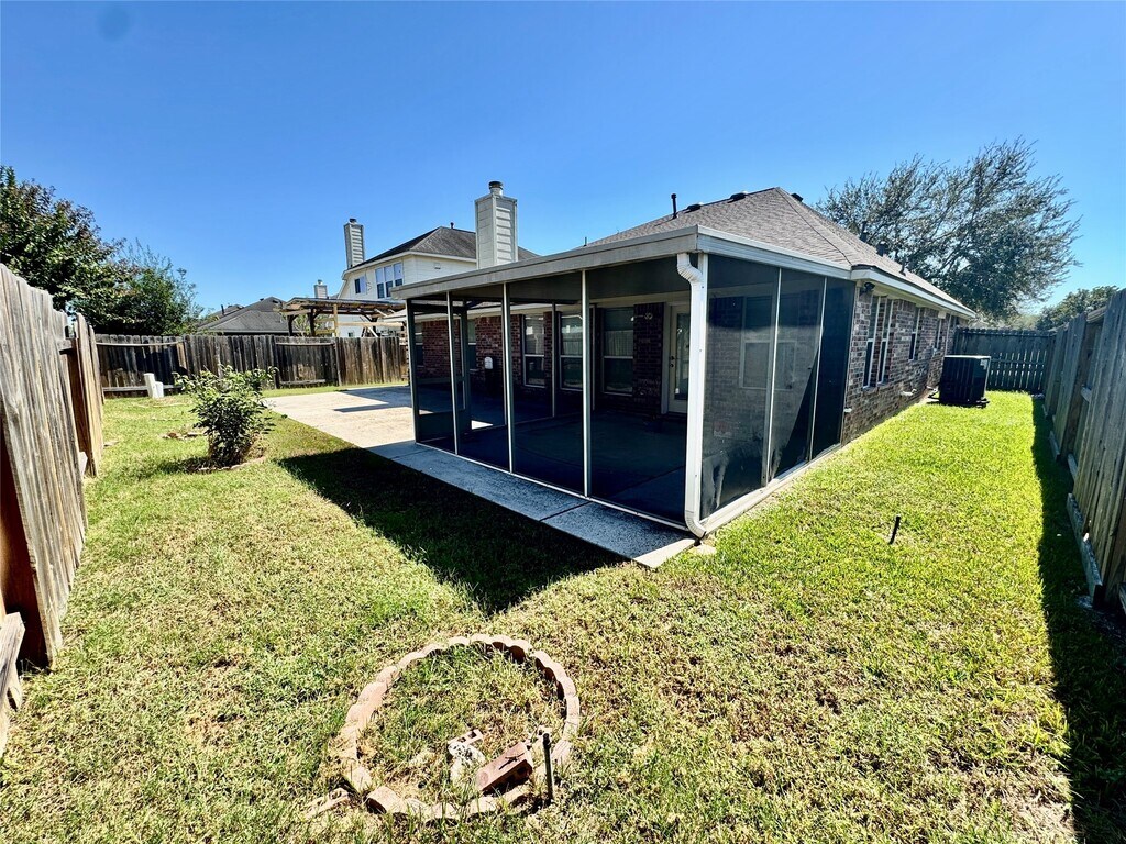 Step into this beautifully updated 4-bedroom,2-bath home in the sought-after Avalon Terrace,just minutes from Pearland Asian Town. With modern vinyl flooring,fresh paint,and no carpet,this home is move-in ready. The open layout features soaring ceilings,a gourmet island kitchen with granite countertops,and a formal dining area — perfect for entertaining or everyday family life. The primary suite offers a private ensuite bath and walk-in closet,while additional bedrooms provide flexibility for kids,guests,or a home office. Step outside to the covered,screened patio overlooking the spacious backyard — ideal for gatherings,barbecues,or relaxing after a long day. Additional highlights include a recent roof and upgraded fixtures. Avalon Terrace offers a welcoming neighborhood with easy access to shopping,dining,and major highways. ? Don’t miss this opportunity — schedule your private showing today! MLS# 27369798