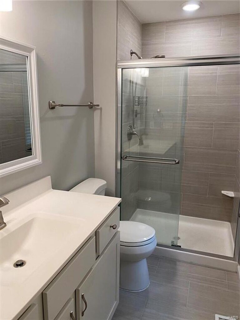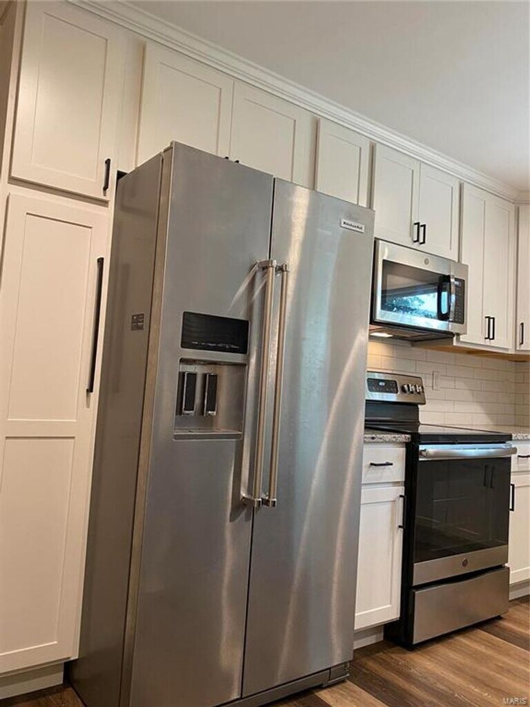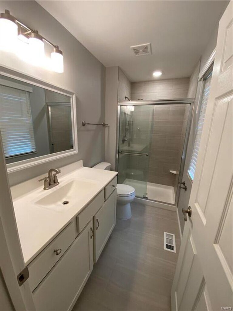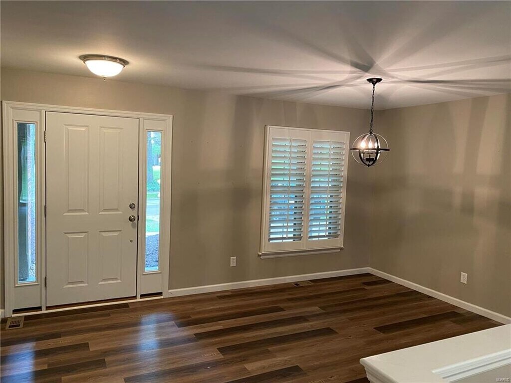 Renovated 4 bedroom / 2 bath ranch in Parkway School District. This spacious newly renovated home in the Country Lane Woods subdivision has plenty to offer. Huge open floor plan including kitchen, dining, and family room with fireplace. Luxury vinyl plank flooring, custom cabinets, granite countertops, oversized island/breakfast bar, stainless steel appliance, and tile backsplash. Wood burning fireplace anchors the family area with easy access to the huge rear patio. Update bathrooms (Hall and Master). The Master Bath features gorgeous walk-in shower with tile walls and glass door and large vanity. Laundry room is located on the main floor. Basement is about 50% finished with can lighting and plush carpeting giving it a warm feel. The other half contains an abundance of shelves and open floor space for storage. Newly landscaped with fenced rear yard, fire pit area, and raised garden. Two car garage.