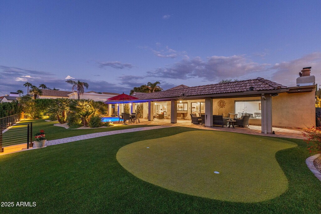 Lakeside Luxury: Your Dream Retreat in McCormick Ranch. Nestled on a serene cul-de-sac,this Spanish-style,single-level home backs to a tranquil lake w/ a private boat dock,perfect for sunsets. Featuring a split master floor plan,it offers 4 beds,2.5 baths and almost 3,000 sqft. The interior boasts large picture windows,wood-beamed ceilings,and a stacked stone fireplace in the formal living and dining areas with stunning lake views. The upgraded kitchen shines with custom maple cabinetry,Wolf & Subzero appliances,granite counters,and a center island. The spacious master suite includes a relaxing sitting area,large walk-in shower,granite vanity,and an expansive walk-in closet. Outside,enjoy lakeside living with an oversized covered patio,gorgeous landscaping w/ putting green. There is an option to rent a boat for an additional daily fee.
