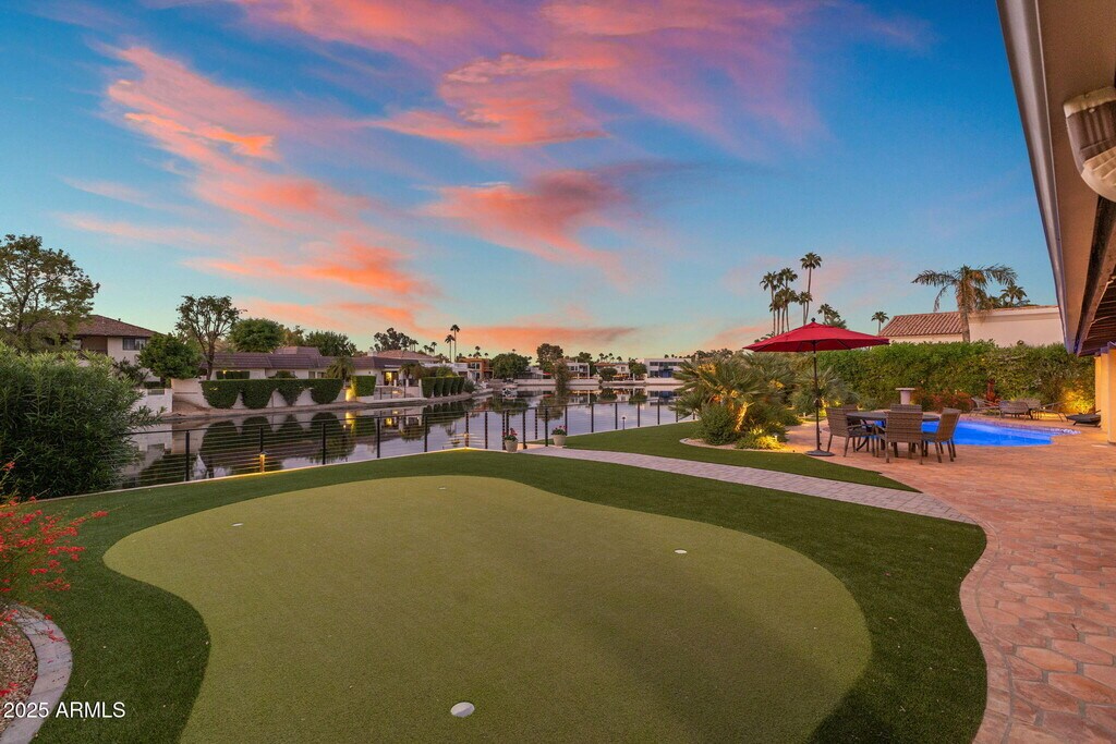 Nathaniel PierceLakeside Luxury: Your Dream Retreat in McCormick Ranch. Nestled on a serene cul-de-sac, this Spanish-style, single-level home backs to a tranquil lake w/ a private boat dock, perfect for sunsets. Featuring a split master floor plan, it offers 4 beds, 2.5 baths and almost 3,000 sqft. The interior boasts large picture windows, wood-beamed ceilings, and a stacked stone fireplace in the formal living and dining areas with stunning lake views. The upgraded kitchen shines with custom maple cabinetry, Wolf & Subzero appliances, granite counters, and a center island. The spacious master suite includes a relaxing sitting area, large walk-in shower, granite vanity, and an expansive walk-in closet. Outside, enjoy lakeside living with an oversized covered patio, gorgeous landscaping w/ putting green. There is an option to rent a boat for an additional daily fee.