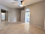 Desirable single story home conveniently located in the Summerlin North community! Upon entry your greeted with vaulted ceilings, tile flooring throughout and plenty of natural sunlight! This home features 3 bedrooms with 2 bathrooms, recently updated kitchen boasts quartz countertops, tile backsplash, stainless steel appliances plus a dining nook! The primary bedroom offers direct access to the backyard, walk-in closet, attached bathroom with dual vanity sinks and an upgraded walk-in shower! Other amenities include; 2-car attached garage with ample storage, two ring security cameras and ceiling fans in each bedroom!