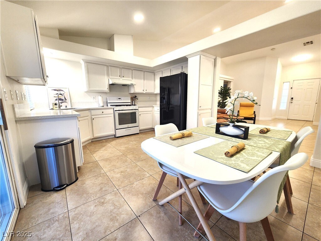 FULLY FURNISHED, MOST UTILITIES INCLUDED remodeled 3-bedroom, 2-bathroom single-story gem in the 89139 zip code. Built in 2002, it's 1,184 square feet on a 3,920-square-foot lot—perfect for easy, low-maintenance living. Utilities included is Electric, Water, Gas, Sewer, Trash, and Basic Internet. The front yard boasts desert landscaping with artificial turf for curb appeal without the upkeep. The backyard offers the same smart design, plus a covered patio for outdoor relaxation. A 2-car garage adds convenient parking and storage with Smart opener. Inside, tile flooring flow through the open layout, highlighting the updated kitchen, living spaces, and spacious luxury vinyl plank bedrooms. Two full baths keep things practical. Includes two TVs, exterior security cameras and doorbells, and smart locks with PIN entry for secure access. In the family-friendly Southwest area, enjoy proximity to shops like Costco and quick 215 Beltway access to the Strip, Red Rock Canyon, or the airport.