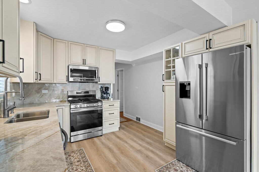 FOR Rent a fully renovated 2024-2025 brick home in Harwood Heights. The layout includes three bedrooms,two bathrooms,a spacious kitchen with a dining area,and a bright living room with decorative finishes. The kitchen features stone countertops,built-in cabinets,new appliances,and modern lighting. All living areas are finished with natural hardwood flooring. The primary bedroom includes a large closet. The basement is professionally finished and includes a laundry room,cold storage space,and an additional bathroom with a shower. The home is equipped with an updated electrical system with circuit breakers. There is an attached garage with a rear exit leading to a 10 by 34-foot concrete pad,ideal for additional car or boat parking. Newly finished 2025 backyard,complete with a sleek modern gazebo,stylish wooden fence,and a spacious shed - perfect for outdoor living and entertaining. The property is located near a park,shopping at HIP mall and offers convenient access to public transportation and major expressways. MLS# MRD12564959 Based on information submitted to the MLS GRID as of [see last changed date above]. All data is obtained from various sources and may not have been verified by broker or MLS GRID. Supplied Open House Information is subject to change without notice. All information should be independently reviewed and verified for accuracy. Properties may or may not be listed by the office/agent presenting the information. Some IDX listings have been excluded from this website. Prices displayed on all Sold listings are the Last Known Listing Price and may not be the actual selling price.