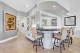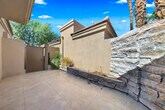 Beautiful Lakefront Luxury Condo Completely Remodeled with Golf and Tennis Membership! This is the getaway you have been dreaming of in the desert! This stunning Lakefront condo is gorgeous and now available for the first time as a SHORT TERM RENTAL! This 3 BR,3BA condo has been reconfigured making this a one-of-a kind Sycamore model on one of the best view lots in Palm Valley CC. As you step through the custom glass entry door you immediately notice the breathtaking lake view,lush golf course and majestic mountains that extend gracefully through the windows and sliders creating an indoor-outdoor ambience for entertaining,then you look at the home and discover the entire home has been professionally and tastefully decorated! This floor plan has soaring ceilings that seamlessly connect to the dining area and a 12 ft. granite wet bar w/ wine cooler where friends & family will enjoy gathering. This beautifully upgraded condo offers boundless enhancements including motorized interior blinds,2 car garage w/ epoxy floor,stacked stone fireplace w/ flat screen TVs,a built-in BBQ,wall insets to showcase the beautiful artwork and every room has been recently painted making it light and bright. The kitchen is a dream for the cook in the family and boasts a unique semi-circle granite kitchen island w/ seating for 5,under counter microwave,stainless Frigidaire appliances and a chic stainless steel and glass hood. All the bathroom ensuites have raised granite counter tops,Toto toilets,custom sinks and faucets,custom designed showers. The Primary ensuite showcases a recessed wall mounted 55'' television,2 walk-in closets dual sinks w/granite counter tops,custom designed shower,and a private bedroom patio. One of the guest bedrooms is currently used as a den w/ a custom entertainment wall that houses a recessed 65'' television,built-in desk,stacked stone wall from floor to ceiling,& custom wall cut-outs which provide a flow through feel. Palm Valley CC is conveniently situated just minutes away from various shopping destinations,including El Paseo,The River,Casinos,Living Desert Reserve and so much more! There is a vast array of dining options in the desert and numerous grocery stores are also nearby,such as Whole Foods,Bristol Farms as well as Costco. This is the lifestyle we love here in the desert so come be a part of it and experience the 5 Star resort lifestyle of Palm Valley CC,one of the desert's most vibrant communities!