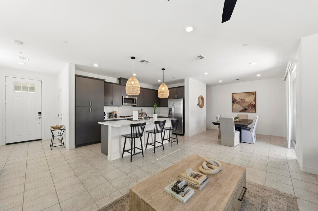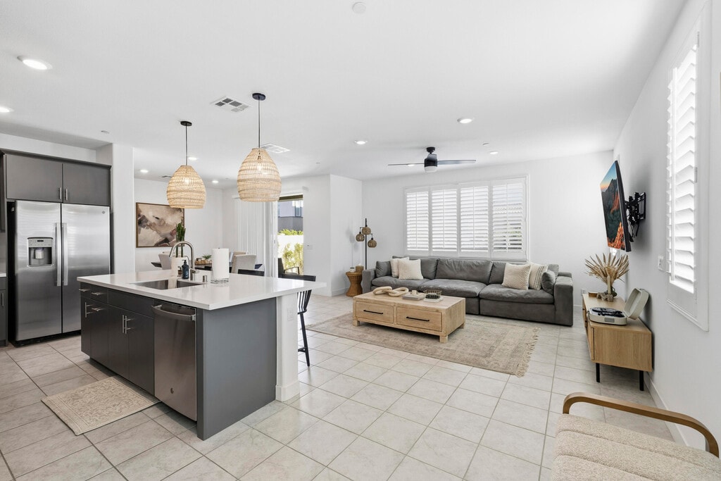 This beautifully furnished,LENNAR-built two-story home in Palm Desert combines modern comfort,style,and everyday convenience. The main level features an open-concept layout with a spacious kitchen,dining area,and living room that flow effortlessly to a large covered patio,creating an ideal setting for indoor-outdoor living. Upstairs,a versatile loft provides additional living space alongside three bedrooms,including a spacious primary suite complete with a walk-in closet and a well-appointed ensuite bath. Situated in the sought-after University Park community,residents enjoy access to resort-style amenities including a community pool,parks,and expansive greenbelts. The home is also conveniently located near renowned golf courses such as Marriott's Shadow Ridge,as well as popular destinations like The Living Desert Zoo,El Paseo,and Eisenhower Medical Center. Shopping,dining,a dog park,and a playground are all just minutes away. Offered as a seasonal rental with a three-month minimum at $4,000 per month,or as a long-term lease at $3,300 per month,this home is an excellent opportunity for anyone seeking a comfortable,turnkey residence in the heart of Palm Desert. MLS # 219142994