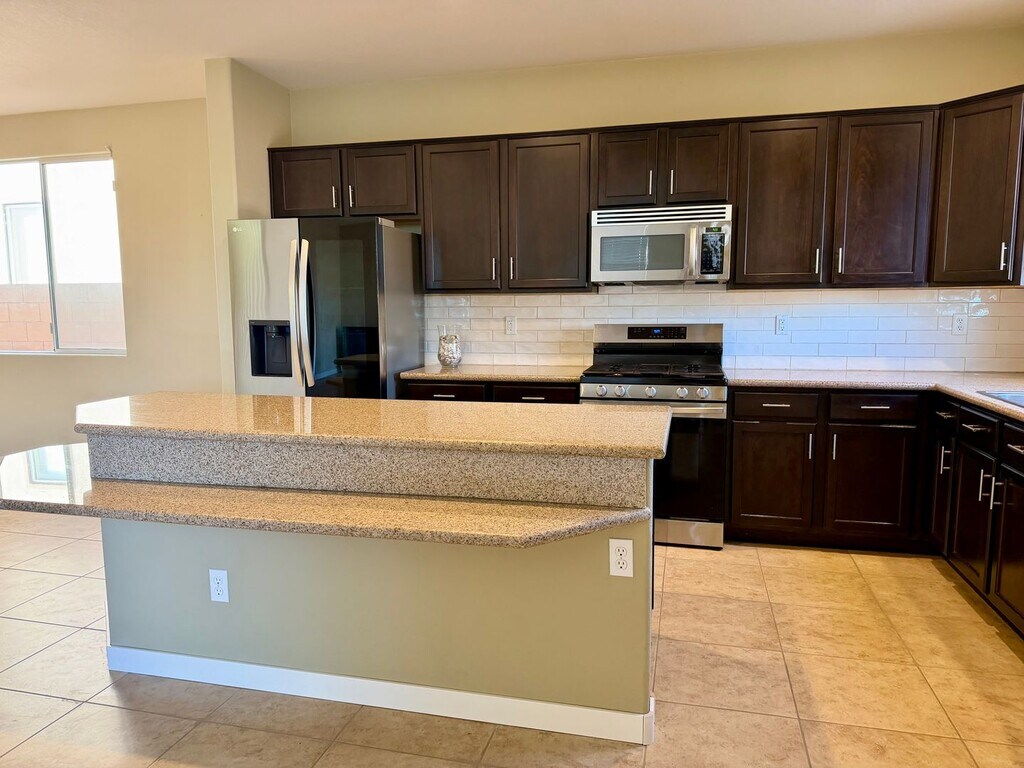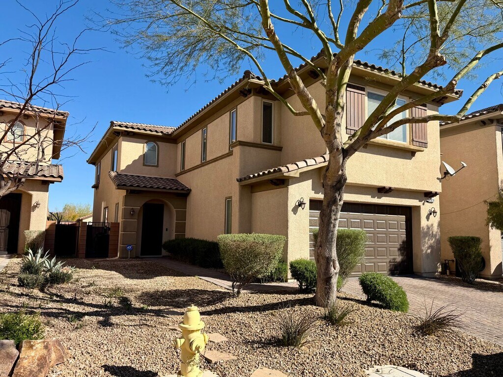 Welcome to this beautiful two-story home in the highly sought-after Mountains Edge community! This spacious residence offers 4 bedrooms and 3 full bathrooms with a thoughtfully designed floor plan that combines comfort, functionality, and modern living. Step inside to find a bright and open layout featuring generous living areas, abundant natural light, and seamless flow between the living room, dining space, and kitchen—perfect for everyday living and entertaining. The kitchen offers ample cabinetry, counter space, and a convenient layout that opens to the main living area. There is also a bedroom and full bath downstairs. Upstairs, the spacious primary suite provides a relaxing retreat with a large walk-in closet and bathroom. 2 additional bedrooms, laundry and large loft upstairs. The private backyard provides space for outdoor enjoyment, ideal for relaxing or entertaining. Additional highlights include a two-car garage, and low-maintenance landscaping.