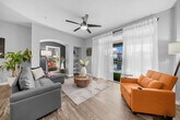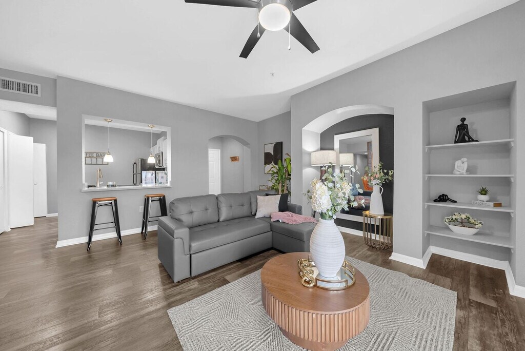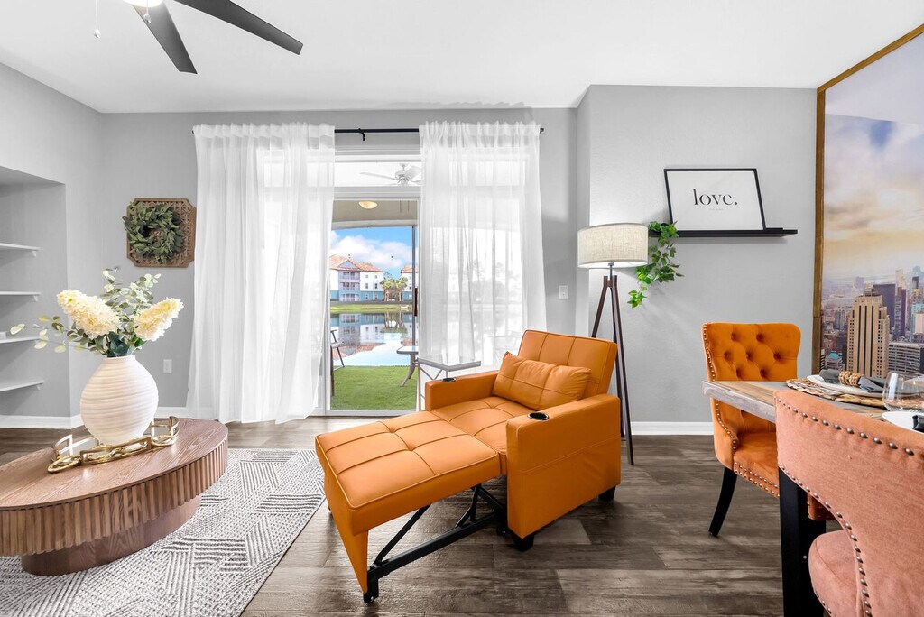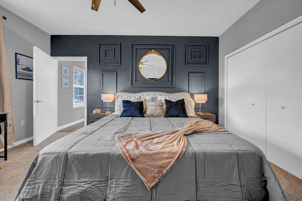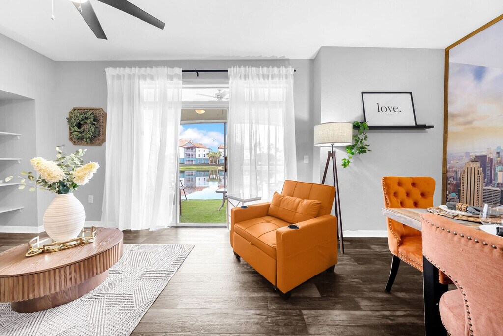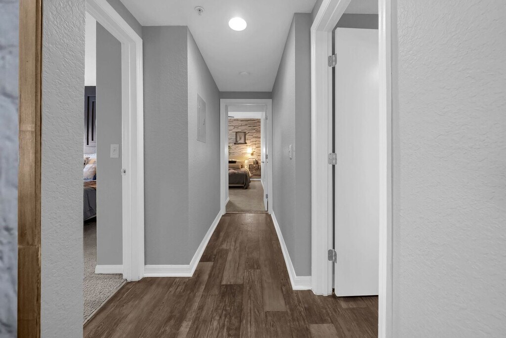 The advertised rate of $3,831/month is the lowest available price, based on a 30 day(s) stay with a move-in date of August 24, 2026. Rates vary depending on the duration of stay, season, and other parameters. For exact pricing and additional pricing components, please visit our website and enter your desired move-in and move-out dates. The rate is applicable when billed upfront; it can be higher if billed in multiple payments. Feel at home in this modern 2-bedroom, 2-bathroom apartment at Veranda in Tampa, located on the first floor. This thoughtfully designed, corporate-ready apartment includes a master bedroom with a king-size bed, walk-in closet, and 65” Smart TV; a second bedroom with a queen-size bed, closet, and 65” Smart TV; a living room with a gray futon sofa and red convertible chair; two private full bathrooms; a fully equipped kitchen with modern appliances, cookware, and dining essentials; central air conditioning; a washer and dryer; a balcony; cleaning supplies; and an iron, vacuum, and mop. Guests can enjoy access to a wide range of community amenities, including two adult swimming pools, a soccer field, a kids park, a gym, a business center, a dog park, and barbecue grill stations. A pet fee of $100 per pet applies (max 2 pets, under 25 lbs). Early check-in at 2:00 PM is available for $35, and late check-out at 12:00 PM is available for $35. On-site parking is available for up to 2 vehicles per reservation; all vehicles must be registered in advance. Nestled in a peaceful, well-connected community, this apartment is near Publix, Target, Walgreens, and Walmart, and just 5 minutes from Upper Tampa Bay Park and Empower Adventures zip lines. The neighborhood’s prime location offers quick access to the Veterans Expressway, making Downtown Tampa, the airport, Raymond James Stadium, Ben T. Davis Beach, and Clearwater Beach easy to reach within 15–20 minutes. Smoking is prohibited. No parties or events of any kind are permitted, and no unauthorized guests are allowed; violations may result in immediate termination of stay without refund. Guests must be 21 years or older to book and must be present for the duration of the stay. Includes a dedicated work desk in the living room. [SI]