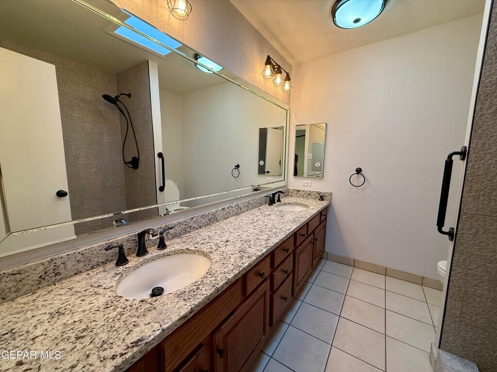 Immaculate and updated single-family home with beautiful finishes throughout. The living room features a gas fireplace,wood-look tile,large windows,and shutters. A stylish galley kitchen offers granite counters,stone backsplash,recessed lighting,and an enclosed laundry area with cabinetry. The downstairs master suite includes a walk-in closet and a stunning bath with double granite vanity. An additional bedroom/office and powder room are also on the main level. Upstairs you'll find two bedrooms and a three-quarter bath. Enjoy a private backyard with covered brick patio,raised flower bed,and stone/iron fencing with mountain and sunset views. Xeriscaped front yard,mature trees,2-car garage,and refrigerated air complete this home. Schedule your viewing today!