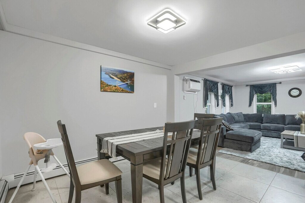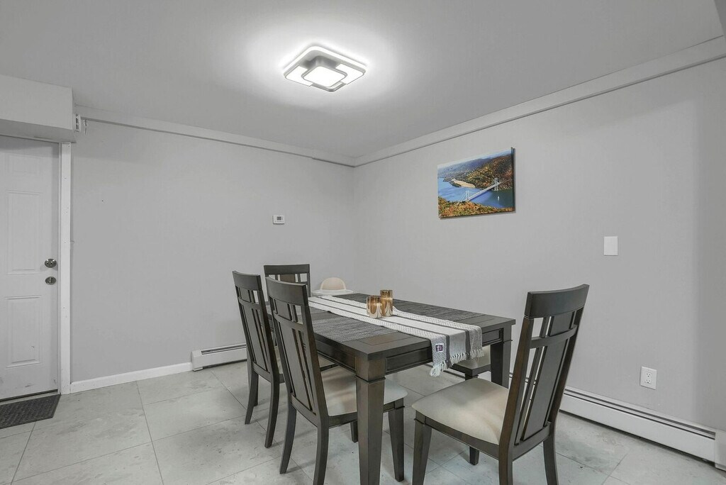 Escape the hustle and bustle of NYC and feel at home in the peaceful serenity of this spacious, modern retreat in Fort Montgomery. Surrounded by rustling trees and fresh mountain air, this apartment offers the perfect break. The large kitchen is fully equipped with an oven, hobs, kettle, toaster, fridge, and washing machine, providing all the utensils you’ll need to make proper dinners. The living room offers plenty of space for the whole family to relax, featuring a large, comfy sofa and a dining table for six. Enjoy movie night with the TV provided. Enjoy the convenience of free parking. Located on the route into town, the attractive property is set back from the road, making for a peaceful stay. The main attractions of town are right around the corner, and so is Bear Mountain and all the nature you could ask for. You'll have the best of both nature and convenience, located near top hiking trails and just a short walk to the charming shops and restaurants. Lost or forgotten keys incur a replacement fee; the minimum charge is $300. Any type of illegal activity is strictly prohibited. The fee for bringing an unauthorized pet is $500. Unauthorized early check-in and late check-out charge is $500 plus the equivalent amount of the night(s) impacted. [SI]