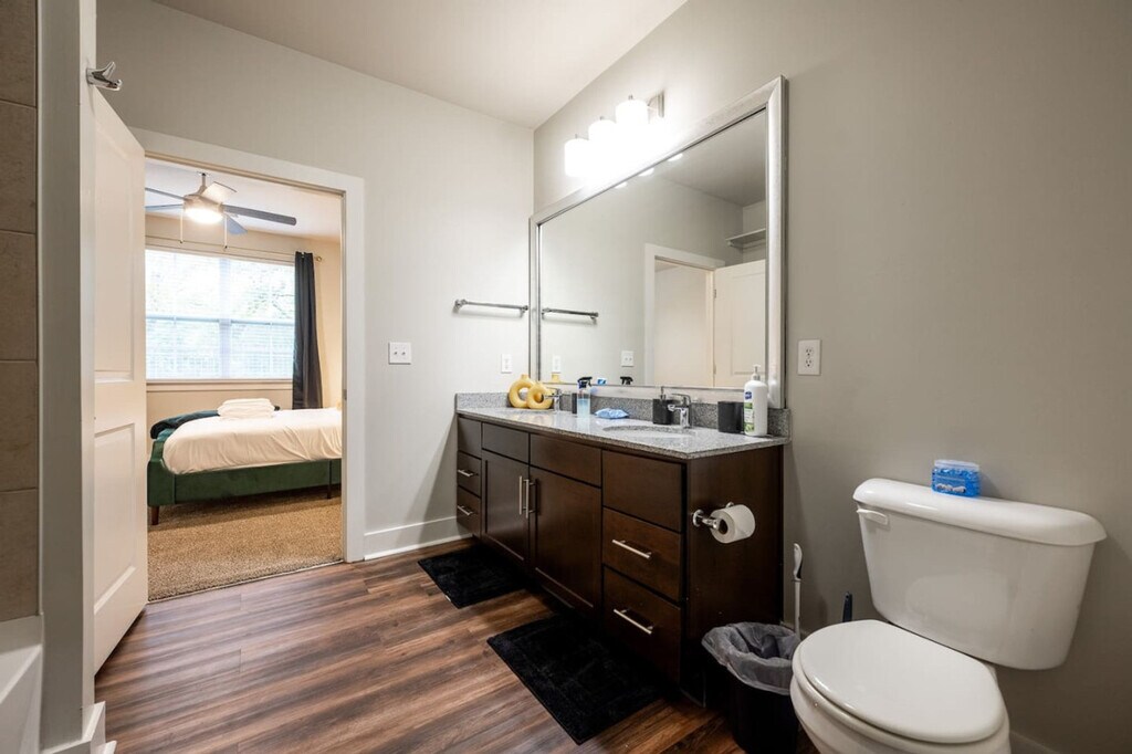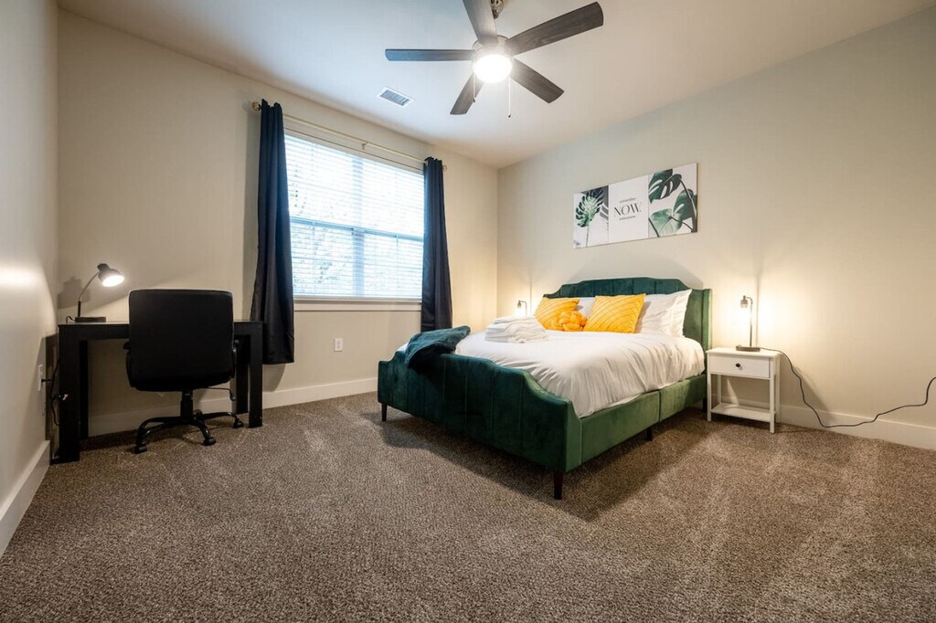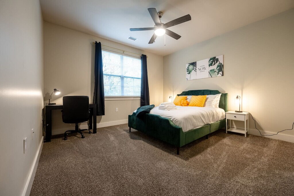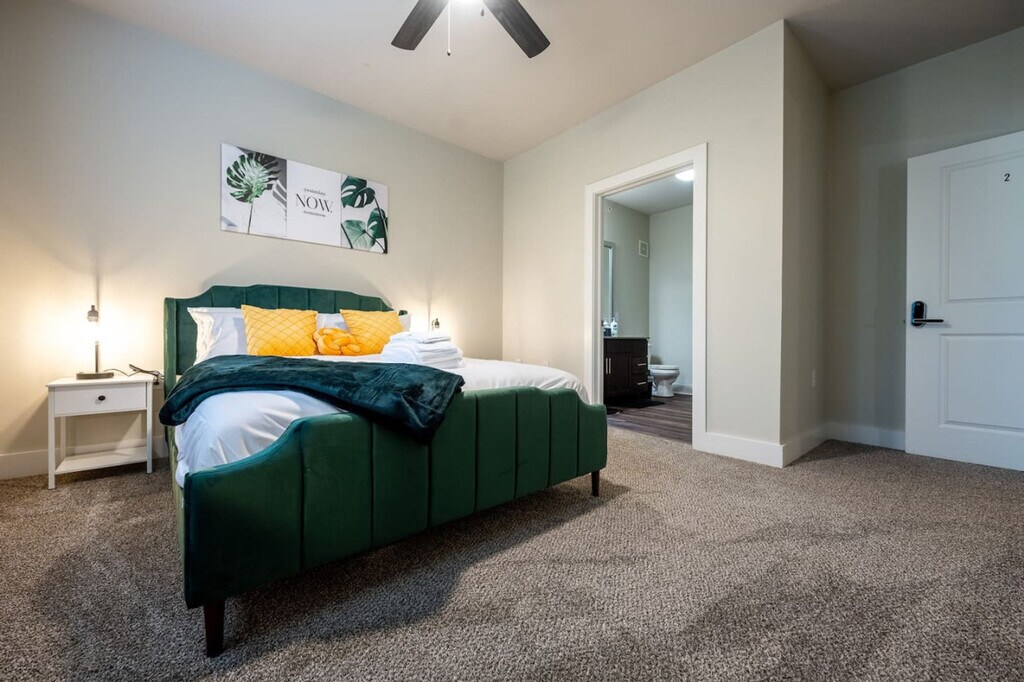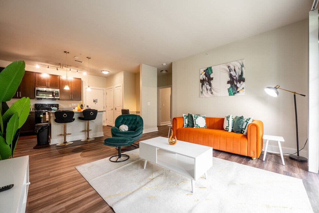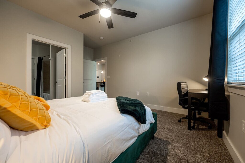 Feel at home in this centrally located two-bedroom apartment near The Fashion Mall, Keystone at the Crossing. Just minutes away from high-end shopping, dining, and entertainment, this apartment offers a fully equipped kitchen, a comfortable living area, and a bedroom perfect for short-term or long-term stays. Explore local attractions like the Monon Trail, Indianapolis Museum of Art, and Keystone Art Cinema for a luxurious and enjoyable stay in this vibrant city. Upon entering, you'll be greeted by a spacious and open living area, complete with modern furnishings and tasteful decor. The living room features a plush sofa and armchair, perfect for lounging after a long day of exploring the city or working remotely. Enjoy your favorite shows or movies on the Roku TV, which comes equipped with streaming services. The fully equipped kitchen is ideal for preparing meals, with stainless steel appliances and all the utensils and cookware you'll need. Enjoy your meals at the cozy dining table or take them outside to the private balcony for some fresh air and sunshine. The bedroom features a luxurious queen-size bed with high-quality linens and plush pillows, ensuring a peaceful and restful night's sleep. The bathroom includes a shower/tub combo and comes stocked with fluffy towels and complimentary toiletries. On-site parking is available, limited to one car per reservation in the outdoor surface parking. Additional visitor parking is on a first-come basis. Located in the heart of the Keystone Crossing neighborhood, this apartment offers a wide range of amenities. Shopping enthusiasts will appreciate the proximity to Keystone at the Crossing, a premier shopping destination with over 80 upscale stores and restaurants. Dining options abound, with Ocean Prime, Sullivan's Steakhouse, and Maggiano's Little Italy nearby. Entertainment is just a short drive away at Keystone Art Cinema and Indie Lounge. The area also offers parks like the scenic Monon Trail for hiking, biking, and jogging. The neighborhood is relatively walkable and bikeable, with several bus stops and ride-sharing services readily available. On-site parking is available, and the property is a short drive to downtown Indianapolis and nearby neighborhoods like Broad Ripple. This is a self-check-in property, accessible from the main entrance. All amenities can be used by guests, but please be respectful of others while using shared amenities. Only registered guests can use the amenities, and no outsiders or visitors are allowed. CCTVs and 24/7 security monitoring ensure compliance. Smoking is strictly prohibited inside or outside on the patio/balcony, parking lot, or within 50ft of the property, with a fine of $300 for violations. Parties and events are also strictly prohibited, with a fine of $500 for violations. Unauthorized pets incur a fee of $250. Check-out time is 11 am, with a $50 charge for every hour after the scheduled time. Missing or damaged items will be charged at direct replacement cost plus a fine of up to $250. The living room is perfect for working remotely, offering a comfortable space to set up your workstation. A laptop computer is not included. [SI]