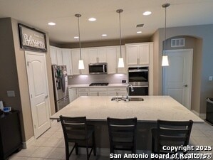 Fernando Trevino"Cielo Ranch Subdivision" off Ralph Fair Road, 3 bedroom, 2 bath, approx 1,718 square feet, 2 car garage, One story, Good sized Island kitchen with Quartz counter tops, Gas cook top, Double ovens, built in microwave, overlooking living and dining areas, great for entertaining, Primary bedroom offers good space and bow window seating area, full bath with separate garden tub and shower, dual vanities with granite countertops, walk in closet, 2 good sized spare bedrooms, Utilty room, mudroom with bench, Covered patio, Sprinkler system, Community clubhouse, pool and play ground, minutes away from HEB grocery store, Wal Mart, The Rim, La Cantera shopping centers and IH-10. Come take a look!