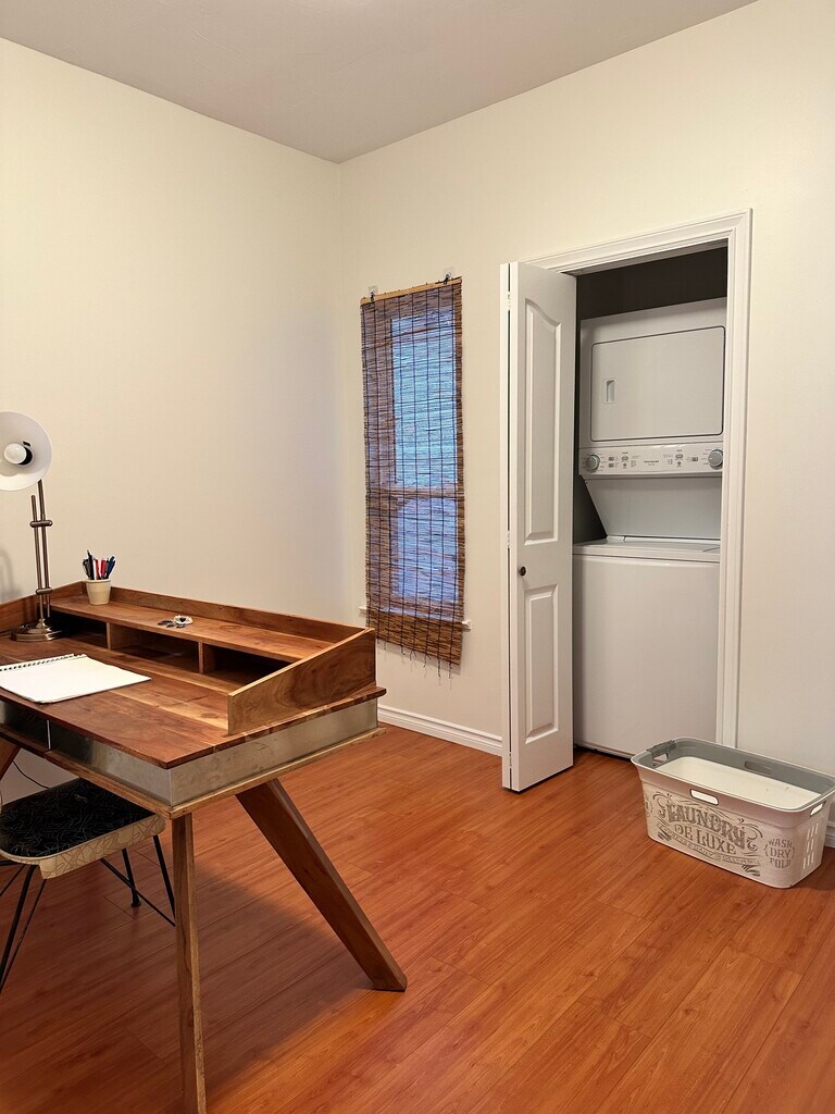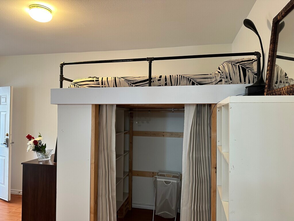 Beautiful attached suite in quiet South Slope Burnaby neighborhood. Ample loft space with raised bed over closet unit, separate bedroom/office, full bathroom with tub and shower, modern kitchen space with new appliances, washer/dryer in suite. Apartment opens to a delightful sunny yard perfect for morning coffee. Plenty of street parking, walking distance to Royal Oak Sky Train station, supermarket, gym, bakery, liquor store and other shopping amenities, single SkyTrain stop to Metrotown.