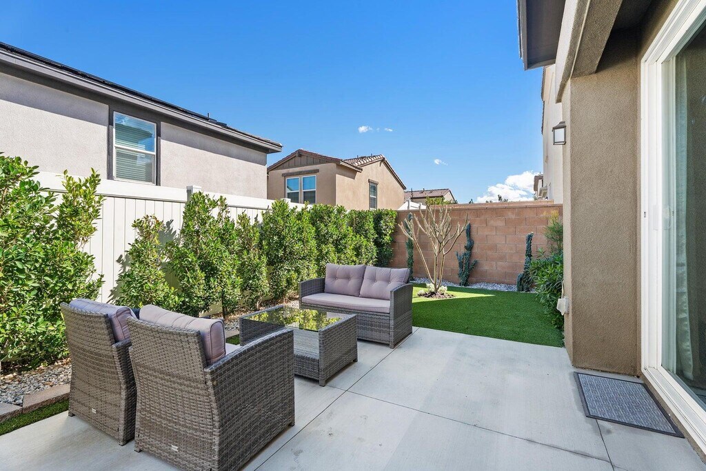Available for long-term lease. Offering partial furnishings,this clean,newer construction 4-bedroom,3-bath home provides a comfortable,low-maintenance lifestyle in a desirable desert community. The property includes a solar system that significantly reduces electricity costs,especially during the hot summer months. Enjoy the best of desert living with access to resort-style amenities,including a community pool and spa,beautifully maintained park areas,and a playground for kids. The home is ideally located with convenient proximity to Interstate 10,making commuting and travel simple. This is a great opportunity to lease a modern,energy-efficient home in an amenity-rich neighborhood. Appliances included a washer,dryer,refrigerator,microwave,and gas cooktop. MLS # 219146949