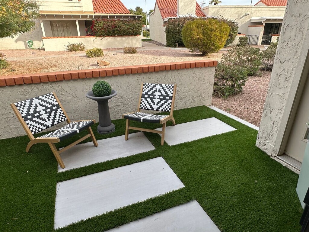 Ultimate designer patio home in perfect Scottsdale location! Reimagined from the ground up. This gorgeous 2 bed, 2 bath home offers soaring ceilings with fireplace and designer touches throughout. New custom kitchen w/large waterfall island, sleek glass appliances, custom range hood. Beautiful floors thru-out this single story w/ modern muted glass interior doors and custom shutters. Roomy resort style primary en-suite offers spa like bath w/ walk-in closet. Spa-styled guest bath. Property is unfurnished! Seasonal/long term rental. Two outdoor patios. Steps from relaxing community pool and spa. 2-car garage w/ epoxy floors. Walk to grocer, Starbucks, greenbelt, canal, Chaparral park. Perfectly located, mins from Fashion Square and Scottsdale's best restaurants. Here's your chance to make this yours. Perfect Location. 5-min walk to grocer, Starbucks, eats, greenbelt, canal bike path. Perfectly located, mins from Fashion Square and Scottsdale's best restaurants, museums, spring training and entertainment.