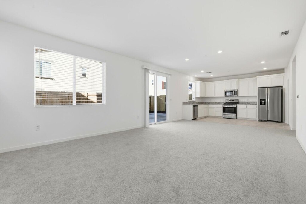 A wide, open living area forms the heart of the home, finished with soft carpeting, natural light from well-placed windows, and versatile space for arranging seating and daily living. Sliding doors lead to the backyard, giving you an easy way to enjoy fresh air or unwind outdoors whenever you like. The kitchen is positioned just beyond, with generous counter space, stainless steel appliances, and ample cabinetry to store cookware and pantry staples. Mealtime routines and weekend gatherings come together comfortably here, with room to prep dishes, serve snacks, or share dinner at the dining table nearby. All four bedrooms are carpeted and offer welcoming personal spaces to wind down. The three full baths support daily schedules with convenience and thoughtful storage. Laundry is located inside the home for everyday ease, and the attached 2-car garage adds parking and storage flexibility. Up to two pets are welcome in this pet-friendly home. This new Sacramento community places you close to everyday essentials and outdoor surroundings. Walmart, Safeway, and Target are just a short drive away for quick errands. Two neighborhood parks and an extensive trail network with scenic overlooks offer inviting spaces for morning walks, evening strolls, or laid-back weekends spent outside.
