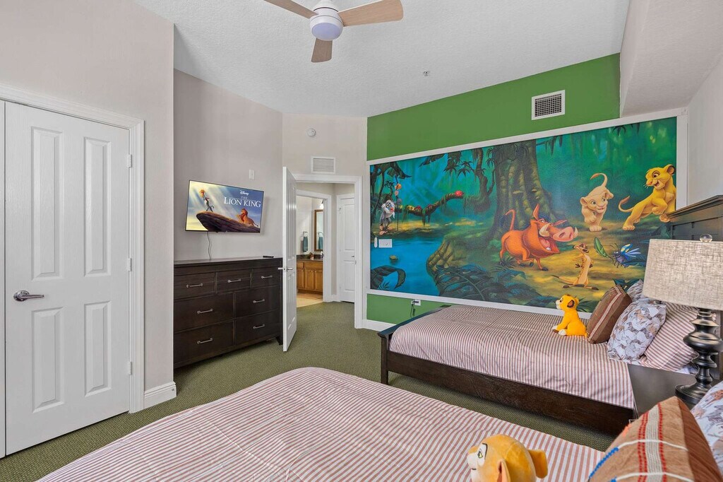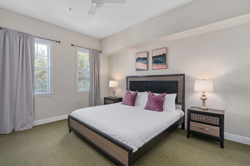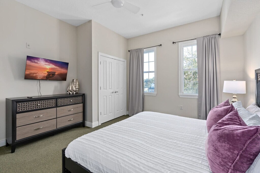The advertised rate of $2,636/month is the lowest available price, based on a 30 day(s) stay with a move-in date of August 1, 2026. Rates vary depending on the duration of stay, season, and other parameters. For exact pricing and additional pricing components, please visit our website and enter your desired move-in and move-out dates. The rate is applicable when billed upfront; it can be higher if billed in multiple payments. Feel at home in this modern 3-bedroom, 2-bath condo in Orlando, offering sweeping golf course views. This light-filled condo is equipped with an elevator. This condo features an open-plan living area, a fully equipped kitchen, and a private balcony overlooking the fairway. Enjoy modern amenities, a smart TV with streaming, in-unit laundry, and central air. Up to two dogs are allowed for a fee of $75 each. Located in the heart of Reunion Resort, this condo offers a peaceful retreat surrounded by manicured golf courses and landscaped grounds. Walt Disney World is approximately 15 minutes away, Universal Studios is approximately 23 minutes away, SeaWorld Orlando is approximately 20 minutes away and Orlando Premium Outlets is approximately 30 minutes away. Check-in is after 4 PM and check-out is by 11 AM. A unique door code is provided before arrival and expires after departure. Quiet hours are between 9 PM and 8 AM. This is a smoke-free home, and smoking or vaping is prohibited inside or on the balcony. Parties or events are strictly prohibited, and only registered guests may enter the condo. Unregistered overnight guests will incur a fee. Pets must be registered, crated when unattended, and kept off furniture. The primary guest must be at least 18 years old and complete ID verification. Registration Number: 5917329 [SI]