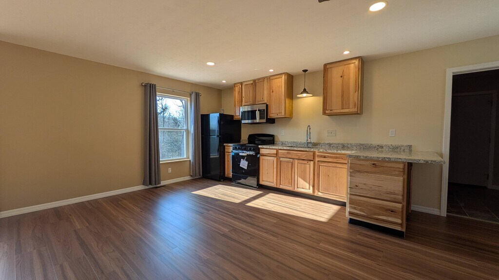 2 Bedroom 1 Bath Home in Country on 40 Acres with Timber and Hunting. The Home: The beautiful front deck invites you into the large open living room, kitchen and dining area making this the center of attention. 2 Bedroom 1 Bath 40 Acres Hunting Gardening Seclusion Chickens are welcome Outdoor Dog or Cat School Bus picks up at end of driveway The two identical bedrooms with closets. The laundry room is spupplied with washer and dryer. Outside plenty of yard overlooking the timber. This newly finished home in 2025 includes central heat and air conditioning, Whirlpool 5.0 cu., Samsung Wahser and Dryer set, cooking range, microwave, fresh paint through out, LVP flooring in all bedrooms, tiled laundry and bath. Living Room/Kitchen/Dining 27x20 Bedrooms 11x10 Location: This home sits just 15 minutes from the city of Hartville off a county maintained gravel road. Even then, the home is secluded down a curved private driveway providing you a quiet country experience. Hartville is the county seat of Wright County. Hartville has several stores including Town and Country Supermarket chain, Double Eagle Gas Station, Casey's Gas Station, Farmer Brew, Corner Cafe, R&R Clubhouse, Ivan's Tex-Mex, Dollar General. along with Hartville Mill and Fisher's Feed Store / Hardware. Nearby is the Wal-Mart in Mountain Grove, MFA in Grovespring, Lowes in Lebanon. Others within an hour include Springfield, Mansfield, Seymour, Marshfield. Just a little further is the Branson experience. Utilities: The newly installed HVAC system is the primary source of heat (propane) and cooling with the attic sporting R-30 insulation as well as the walls being 6" thickness instead of the traditional 4". Water heater, dryer and cooking range are propane. Water is from your own well. Sewer is processed thru the septic tank. Trash service is provided thru Cards Trash (and others) for approximately $25 per month. Electric is Solar Powered utilizing 8 panels and batteries with Laclede Electric providing backup. Great Outdoors: With exclusive access to the 40 acres, this offers so many opportunities. The yard around the house offers gardening as well as a place for the kids to play. The woods and pasture offer some fun hunting experiences including deer, turkey, rabbit, and squirrel. You might be lucky enough to also see a black bear. Nearby you will also find fishing at the Gasconade River with several public access areas including Buzzard Bluff. Hartville Schools: Hartville R-II Schools provide your child a small classroom setting. The main campus includes a pre-school, elementary school, middle school, and high school. Hartville R-II School District is fully accredited by Missouri's Department of Elementary and Secondary Education- and has earned Missouri's Distinction in Performance Award for 9 consecutive years. Lease Agreement: Landlord requires written Lease agreement for 2 years minimum and allows for annual renewals thereafter. Rent is due 1st of each month. Deposit is $1300. Occupancy limit is 4. About the Landlord: This is one of our Premier Properties in the Hartville area. Landlord is well known in the Hartville area for more than two decades and references are available. Please schedule your appointment. NO TRESPASSING