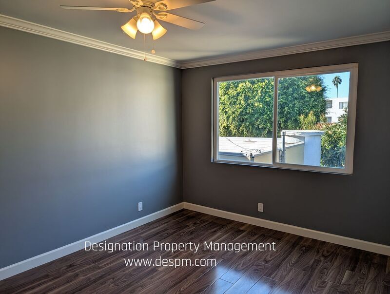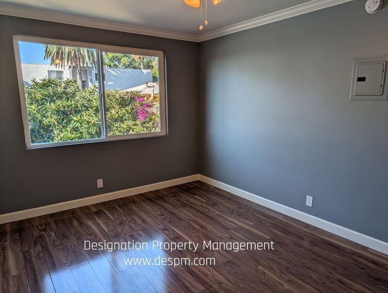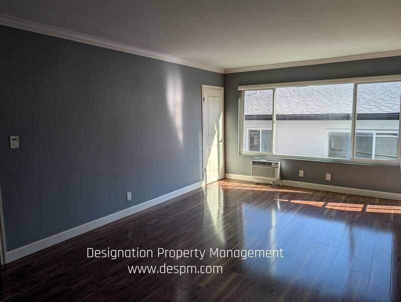 Spacious 1 br 1 ba with open floor plan close to Plummer Park, shops and restaurants. Cooks will love the open kitchen and having guests pull up a stool to the kitchen breakfast bar. Loads of kitchen storage and clothes closets. Separate dining area. Light bright living room opens onto private balcony. Soaking tub in bathroom and shower with frameless doors. Faux hardwood laminate flooring or tile throughout. One small (<20 lbs) pet may be considered with additional $50 deposit. Window a/c, ceiling fans. One parking spot in gated garage. DRE 02036099