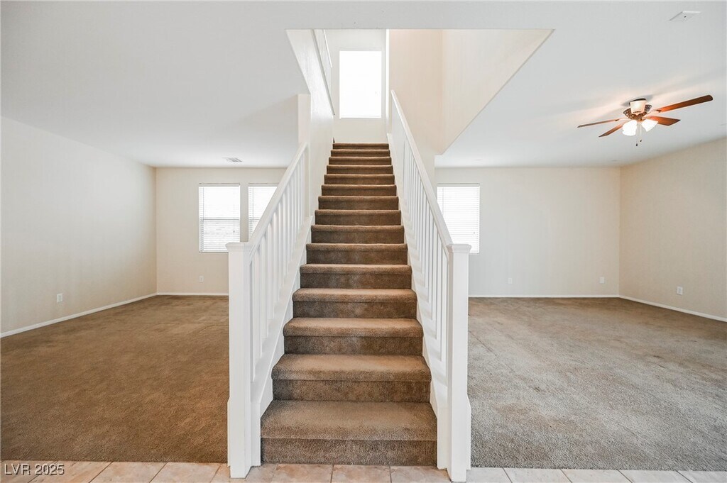 Summerlin Stunner! Application fees refunded after approval & signed lease! This spacious 5 bedroom 3 bath home has it all. Separate living room, dining room & family rooms downstairs with high ceilings. Family room is open to gorgeous kitchen. The kitchen boasts white quartz counters, all stainless steel appliances, island, pantry & ample cabinet space. 1 bedroom & full bath downstairs. Upstairs you'll find an open inviting loft, perfect for 2nd family room or playroom. Large primary has en suite with dual sinks, separate shower & garden tub and walk in closet. All other bedrooms are great size. Guest bathroom upstairs also has dual sinks! Warm neutral tones throughout and plenty of storage! Backyard has covered patio. Located in the Vistas in Summerlin you are close to everything including top rated schools, shopping, dining, Downtown Summerlin, parks, 215 access, and Red Rock Canyon. TOTAL MONTHLY RENT OF $2635 INCLUDES BASE RENT, RESIDENT BENEFITS PACKAGE, & RENTER'S INSURANCE!