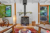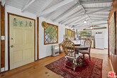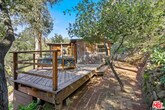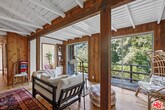 Enchanted Oak Crest! Mimi and Henry Smith's legendary artist home on nearly 2 lush acres has been given new life by the new owners, and now the charm filled main house is ready to welcome new dreamers to take up the life of this mountainside homestead, surrounded by epic views to the west of the 7 Sisters" mountain peaks, including Strawberry Peak, which are protected parkland. The property backs up to parkland, as well, ensuring privacy. Henry and Mimi bought the property in 1960 from the original Homesteaders. They became stewards of this living work of art, building up and out as their needs changed over the years. Artists, musicians, actors, and writers dwelt, and played, on the Oak graced land. Units have been continuously rented since the 1960s, often by famous artists and musicians, all inspired by the pristine land. Up a romantic stone staircase the 2 bed, 1 bath 1934 main house perches with panoramic views of the cluster of peaks across the canyon. Sunlight floods the pine floors, beamed ceilings, and old cedar walls. A woodstove cozies up the rooms. Doors flung open welcome the soft breezes. The kitchen and bath have been updated and new minisplits bring a new level of comfort. Decks take in the views and the sounds of the nearby creek. Stone walls grace old stone patios. Fruit trees give their bounty, herbs and flowers scent the air. Plant tomatoes, and veggies. Or visit Topanga's lovely farmers market. This epic home rests close to the village, the coast, the valley. Here on the mountain, the sounds of music, laughter and birdsong await your passion for the true Topanga Life." MLS# 25582869