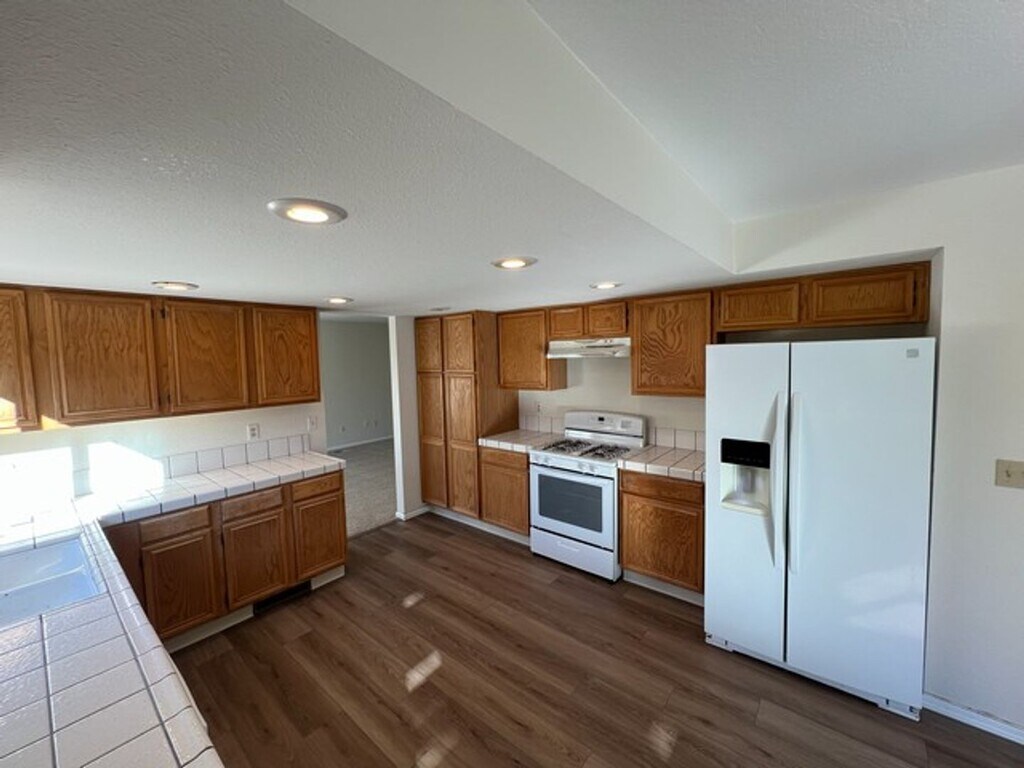 This four bedroom has new paint, new carpet and new vinyl plank flooring. Living room with vaulted ceilings. Kitchen with tile counter top including, new gas stove, fridge, and dishwasher. Separate living room with slider access to large back yard. Airy laundry room washer and dryer hook ups. All bedroom and hall bath upstairs. Primary bedroom with attached bath featuring dual sinks and tub/shower combo. Three car garage. Spacious back yard with covered concrete patio. Close to schools, park and recreation, golf course and freeway access. Tenants responsible for electric/gas and water. Dogs only under 35lbs on approval with additional deposit. No co-signers considered. ***All financially responsible tenants must have Renters Liability Insurance.*** All properties require an application process. Each person over the age of 18 must complete an application. The application fee is $35 per person. Applications include running credit (650 or better), employment/income verification, and rental references. NV. BS.0143495, NV. PM.0164783