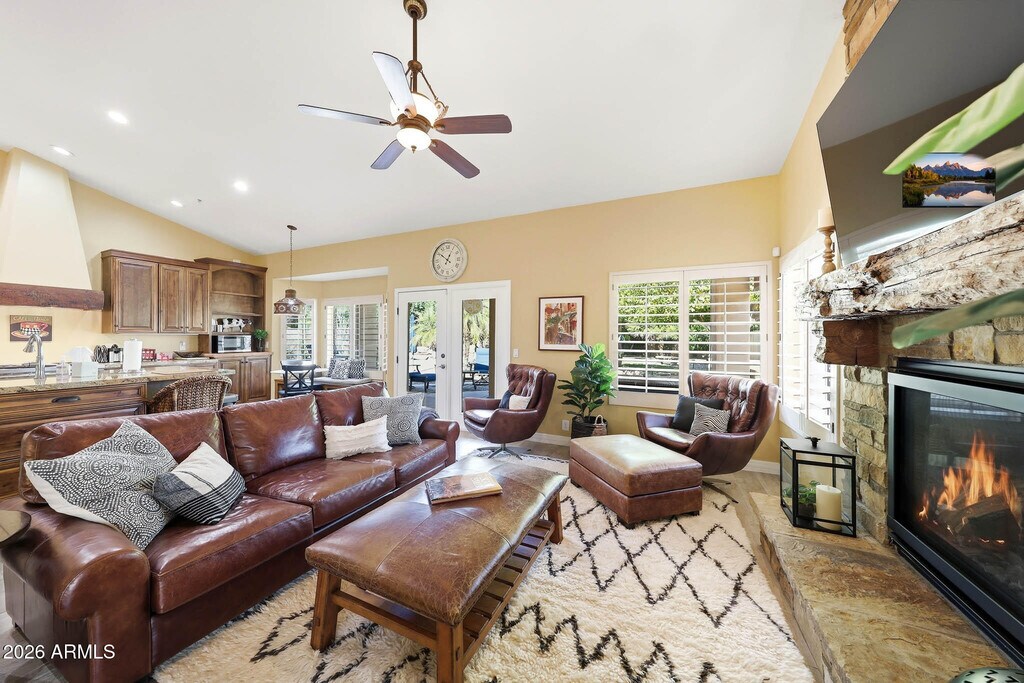 Exquisite,one of a kind home ready for your Spring visit to Scottsdale! Sitting on a quiet Cul-de-sac street,this beautiful home offers everything you will need to enjoy all of what North Scottsdale has to offer. From dual workspaces in the private office to a cozy and relaxing basement complete with board games,there's nothing more you'll need! Dramatic great room with stone fireplace with tons of natural light! Stunning kitchen includes oversized island,Old-World style cabinetry and plenty of counter space. The backyard is a dream complete with built in gas Barbeque,lush landscaping,luxurious pool with water and fire accents,and tons of sitting areas. Conveniently located close to Scottsdale Quarter,Fairmont Princess,Westworld,Grayhawk,Scottsdale Airport,and so much more