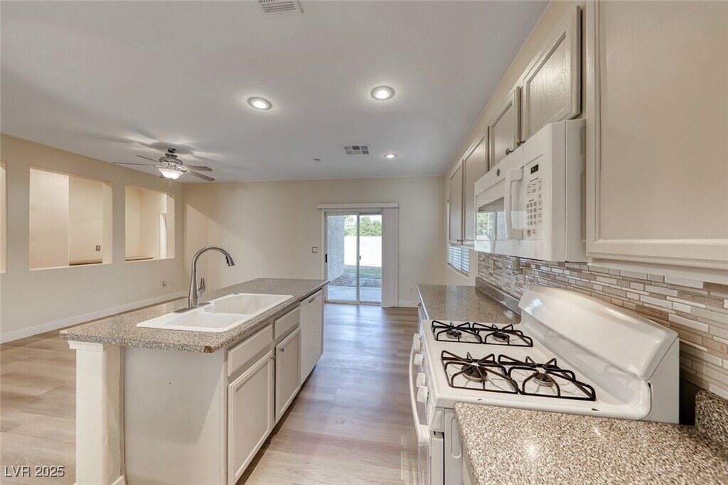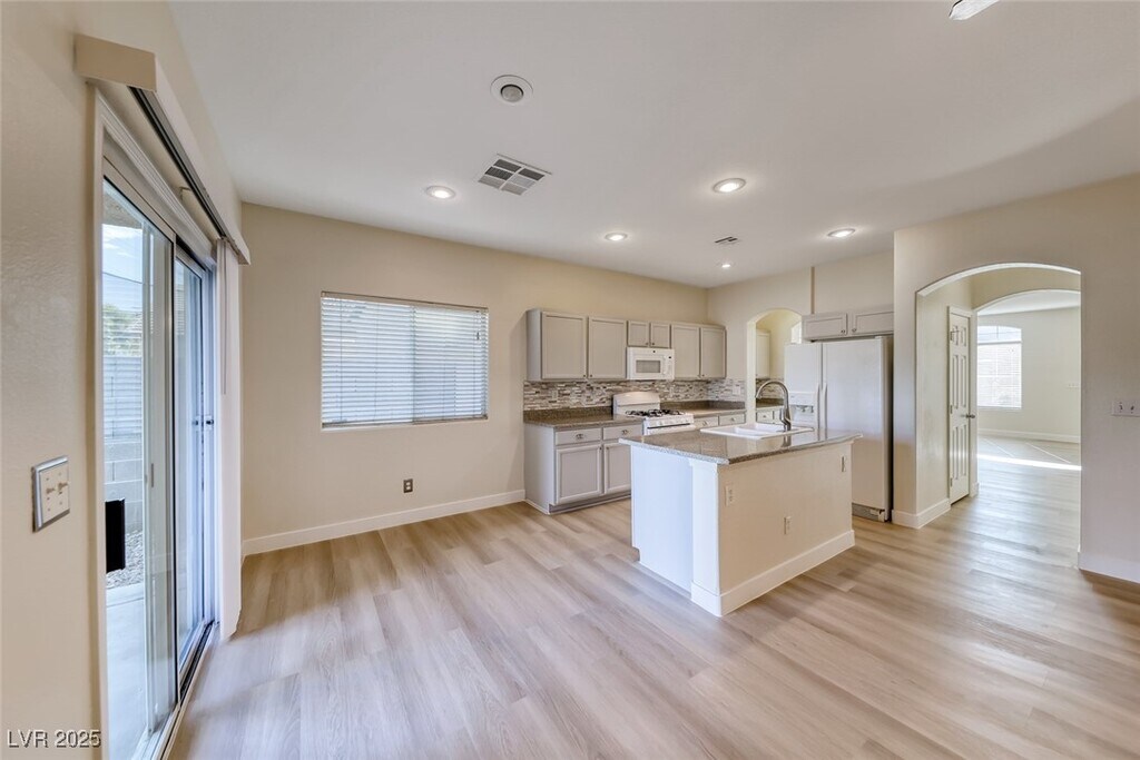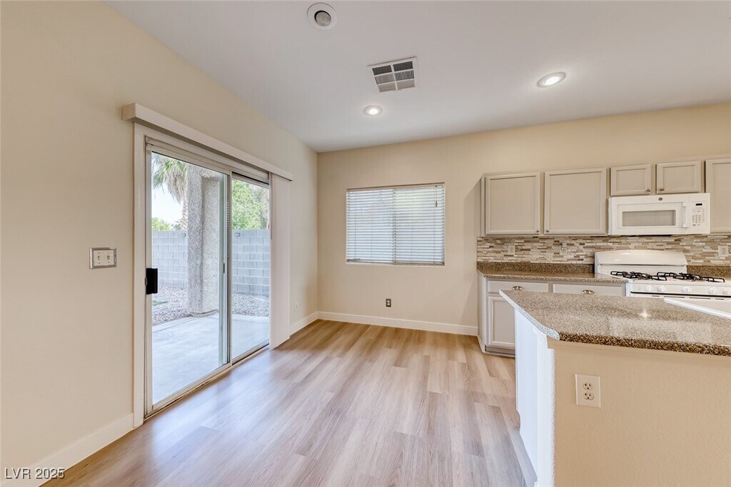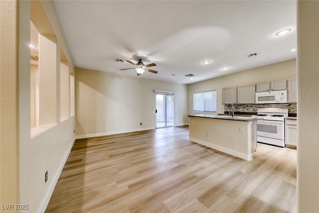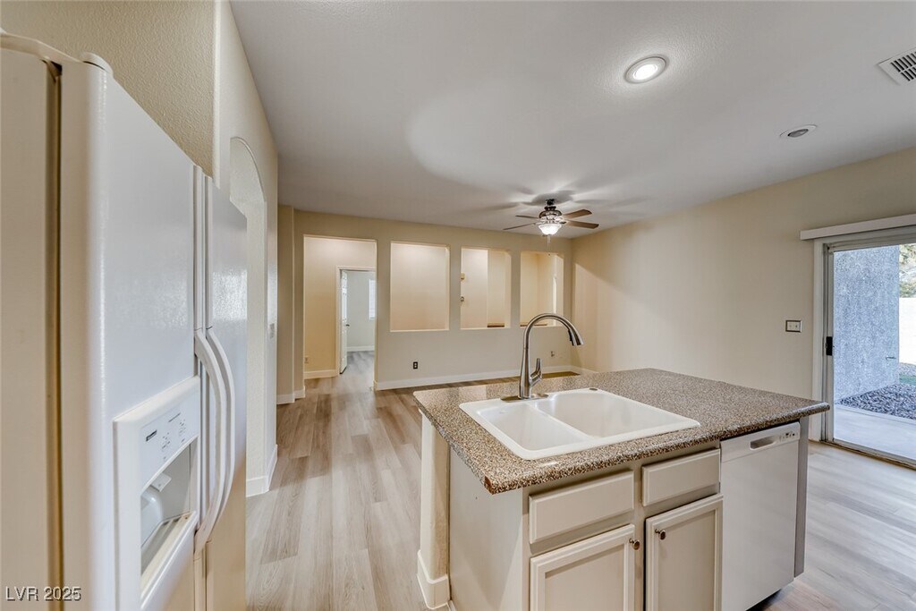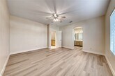 COMPLETE RENOVATION! FRESHLY PAINTED INTERIOR WITH DESIGNER TWO-TONE PAINT AND ALL-NEW LUXURY VINYL PLANK FLOORING THROUGHOUT THE ENTIRE HOME. BRAND-NEW BASEBOARDS ADD A POLISHED TOUCH. ENJOY AN OPEN KITCHEN WITH CUSTOM-PAINTED CABINETS, ALL APPLIANCES INCLUDED, AND A SEPARATE LIVING ROOM AREA PERFECT FOR ENTERTAINING. SPACIOUS PRIMARY SUITE FEATURES A SEPARATE TUB AND SHOWER. NICE-SIZED BEDROOMS WITH CEILING FANS AND BLINDS PROVIDE COMFORT AND STYLE. RELAX UNDER THE COVERED PATIO WHILE ENJOYING LOW-MAINTENANCE DESERT LANDSCAPING. THIS HOME HAS IT ALL! ** PERIODIC RENT= RENT $2095 & SEWER/TRASH $48**