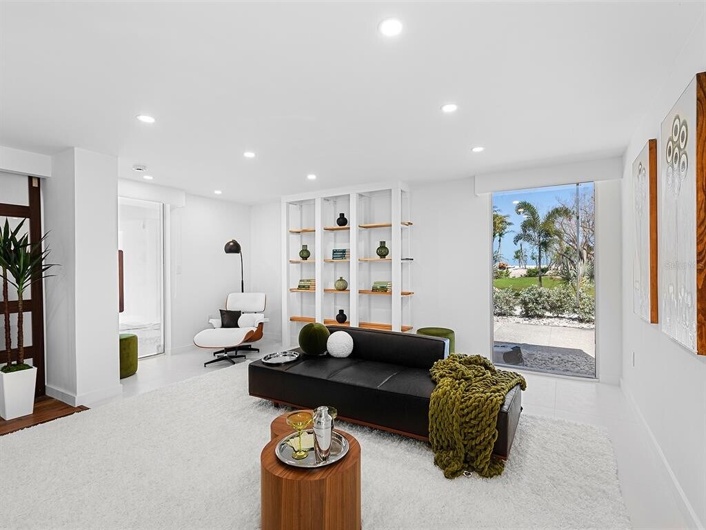 ANNUAL SINGLE FAMILY POOL HOME AVAILABLE FOR LEASE IN SANDERLING CLUB—SIESTA KEY! The Ness House,originally built in 1961 via John Lambie Sr.'s innovative Lambo lithic poured concrete method and renovated in 1971 with architect Tim Seibert,exemplifies Sarasota School of Architecture. It boasts an advanced rainwater collection system,natural cooling via roof outlets and north-facing walls,and earned historic designation in 2011. This waterfront retreat on nearly an acre with 135 feet along Heron Lagoon blends Seibert’s vision with contemporary design amid lush subtropical surroundings. The 4,006 sq ft home,meticulously renovated for flow and entertaining,features minimalist white tile floors,abundant skylights,and seamless indoor-outdoor transitions. A gallery-style foyer highlights the architecture; beyond lies a versatile lounge (convertible to office/guest room) with walk-in closet,floor-to-ceiling windows,built-ins,and private entrance. The expansive family area includes a great room,seating,and reimagined kitchen with Samsung induction cooktop,built-in oven/refrigerator,quartz walk-in pantry,and dramatic tiled backsplash framing nature views. The retractable-glass Florida room adapts for intimate or open-air gatherings. The primary suite offers seating,sleeping,and dressing zones with spa-like en-suite: wood accents,stone counters,soaking tub,walk-in shower. Three guest bedrooms (two with private courtyards; one en-suite,two sharing a stylish bath) ensure comfort. Outdoor spaces shine with covered kitchen,bar,grill,beverage area,lounge/dining zones,and open yoga/meditation area. Native landscaping,shell hardscape,and unique Ipe wood treehouse embody enduring Sarasota School principles. The gated Sanderling Club features 24/7 security,private beach,and marina—membership is included along with lawn and pool maintenance. MLS# A4671186
