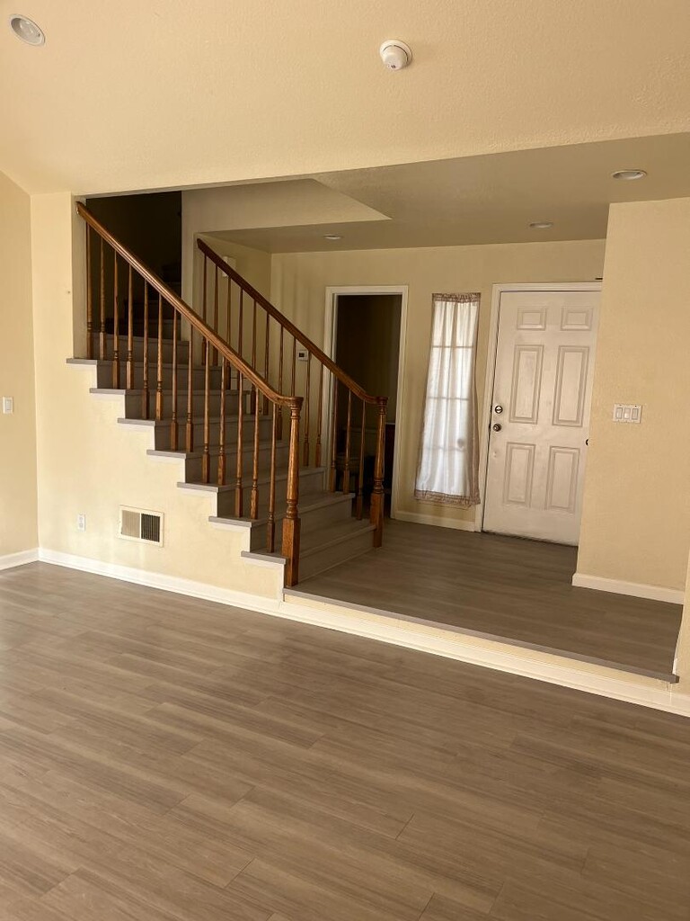 This 2-Story 3 Bedroom 2.5 Bath Single Family Attached Home features a spacious floorplan with over 1,380 Sq Feet of living space. A 2 car garage features automatic garage door opener, and Laundry area with Washer/ Dryer Hook-ups. First floor has wood flooring throughout. Kitchen features tons of cabinet space, breakfast bar, tile countertops, recessed lighting, and comes equipped with a Refrigerator, Dishwasher, and Stove/Oven, and opens to the dining room and large living room with vaulted ceilings and a fireplace. Half bath on the ground floor. Plenty of windows offer lots of natural lighting, sliding glass door provides access to the low maintenance back yard featuring a flagstone patio, rock waterfall and raised flowerbeds. 2nd Floor: New Wood Laminate Flooring throughout, 3 Bedrooms, 2 Full baths with tile flooring, large Primary Bedroom with walk-in closet, tray ceiling, recessed lighting, and en suite bath.Tenant pays Rent, Renters Insurance, and all utilities. This 2...