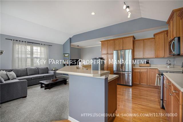 **Available 5/8** This is a beautiful three bedroom townhome in the maintenance-provided neighborhood of Retreat at Maple Crest! Up the stairs is a spacious living room with beautiful windows, a fantastic kitchen featuring hardwood flooring, tons of cabinet space, stainless steel appliances, and a kitchen island. It connects with great dining space which walks out to deck. The master bedroom has vaulted ceiling and connects to private bathroom, complete with double vanity and walk-in closet. One additional bedroom is next to the master. Downstairs, you enter the finished basement with a family room, full bathroom, and the third bedroom. There is a fireplace! HOA dues are paid by the owner and cover exterior maintenance, snow removal per HOA, and community pool. The Application/Credit & Background check fee and/or Pet Screening fee is NON REFUNDABLE. BEFORE you apply and pay any fees, please check with us to be sure the property is still available. Properties rent quickly and may be unavailable before the listing is taken from the website. Email us at All Key Partners Property Mgmt, LLC residents are enrolled in the Resident Benefits Package (RBP). There are two options, please contact us for more details. KPPM cannot be responsible for inaccurate or missing information when listed on a third party website. For the most accurate and updated information, please visit Pets/Service Animals/ESA's (PSAE) must be screened and monthly PSAE rent will be based on the results of the screening and owner approval. Those fees can range from $20 to $75 per PSAE per month. The refundable deposit will be $350 per pet. The home's features could be slightly different or updated. Fireplace may be decorative use only, Please schedule a showing or check with KPPM () to confirm details.
