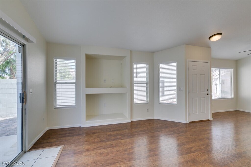 This charming single-story 2-bedroom, 2-bath home in the desirable 89131 area offers a comfortable and functional layout filled with natural light. The spacious living room welcomes you in and flows seamlessly into the kitchen, featuring a convenient breakfast bar perfect for casual dining or entertaining. Both bedrooms are generously sized, providing ample space to relax and unwind. Sliding glass doors off the living room lead to a large backyard with a cement patio and low-maintenance landscaping, creating an ideal space for outdoor enjoyment without the upkeep. This home combines simplicity, comfort, and easy living in a great location.