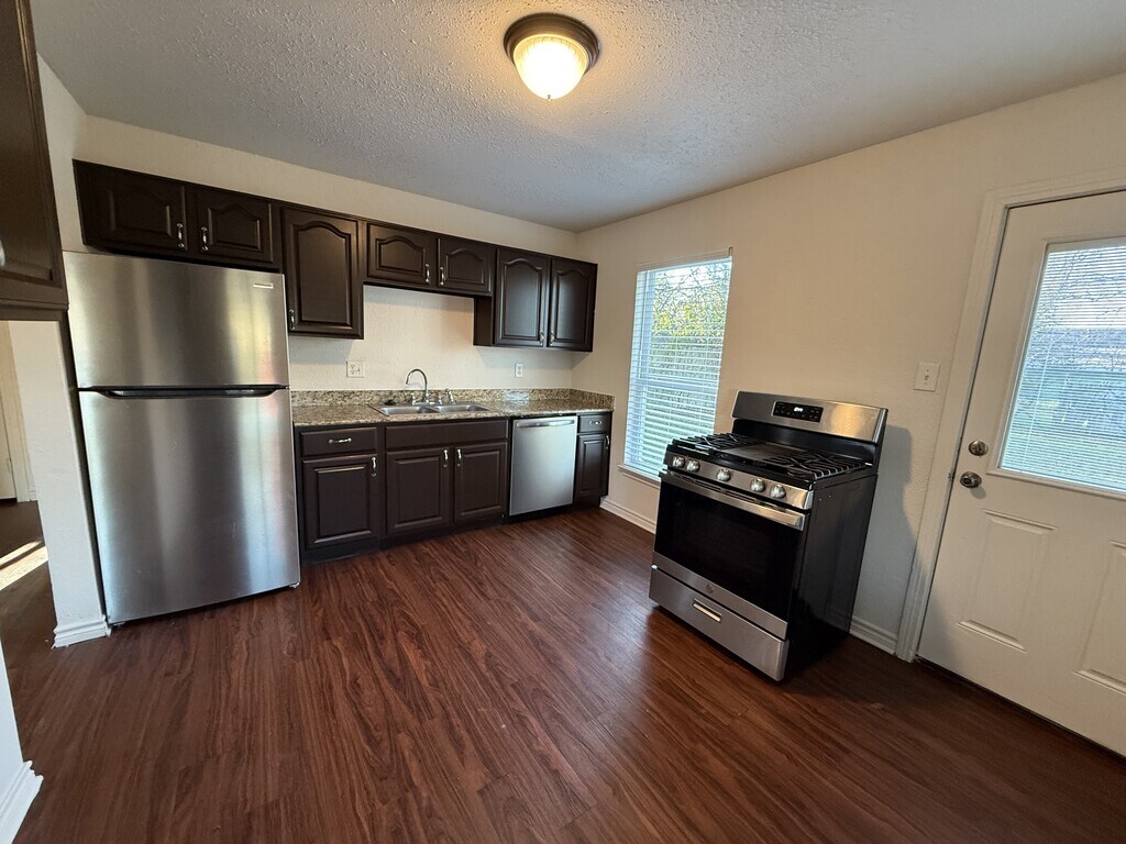 This cozy late-1950s 2 bedroom, 1 bath home has been beautifully remodeled from top to bottom. Enjoy modern upgrades throughout while still appreciating classic charm. Home Features: Updated kitchen with granite countertops Stainless steel appliances including fridge, stove, and dishwasher Bathroom with ceramic tile tub enclosure Carpeted bedrooms and vinyl wood-look flooring throughout living areas Upgraded windows and ceiling fans. 1-car carport Large fenced backyard, perfect for outdoor enjoyment This home offers comfort, style, and convenience—ready for move-in!