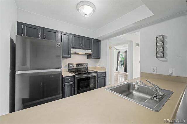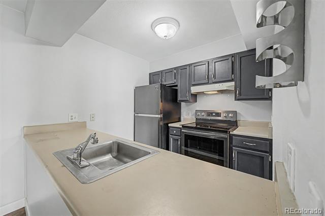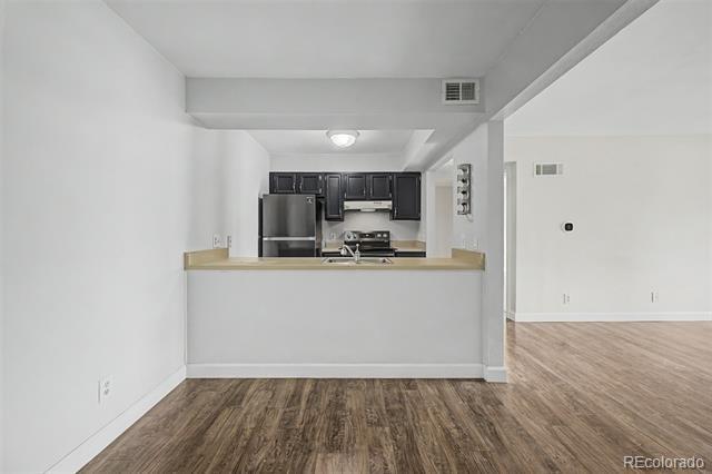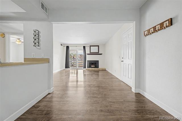 Welcome to this bright and inviting 1-bedroom, 1-bath condo in the desirable Shadow Wood community, offering 714 square feet of comfortable, low-maintenance living paired with resort-style amenities. Step inside to a spacious, light-filled living area where updated flooring and a cozy wood-burning fireplace create a warm, welcoming atmosphere. The open layout provides flexibility for both relaxing and entertaining, while sliding doors lead to a private covered balcony - perfect for enjoying fresh air year-round. The kitchen features ample cabinetry, essential appliances, and a functional breakfast bar that flows seamlessly into the main living space for easy everyday living and hosting. The generously sized bedroom provides a quiet retreat with great natural light, while the full bathroom is conveniently located and well-appointed. Additional highlights include in-unit laundry, extra storage, and a reserved parking space. Residents enjoy access to an impressive array of community amenities, including an indoor pool, fitness center, sauna, clubhouse, tennis courts, and scenic walking trails - offering a lifestyle centered around comfort and convenience. Ideally located with easy access to shopping, dining, parks, and major commuter routes, this home makes it simple to enjoy everything Denver has to offer. A well-rounded opportunity for low-maintenance living with space, amenities, and everyday convenience. Condominium MLS# 2170321