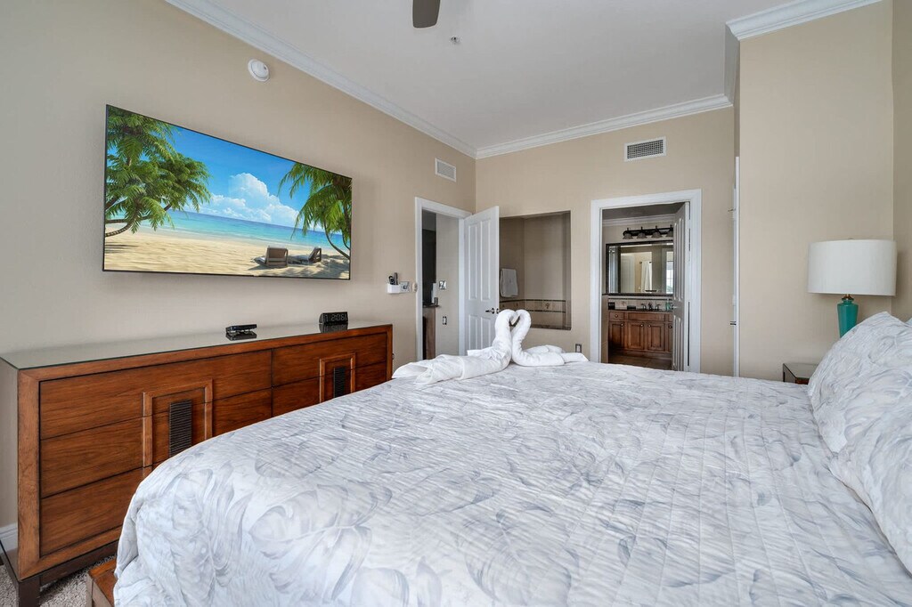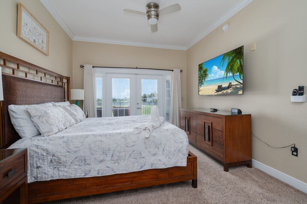Experience luxury and comfort in this stunning 3-bedroom, 2-bathroom condo overlooking the Reunion Golf Course. This fully furnished unit offers extra living space, spacious baths, and an abundance of natural light. Enjoy the furnished balconies, stainless steel appliances, and convenient storage for golf clubs, making you feel at home in every moment. The condo features three spacious bedrooms, two bathrooms, and a large living area. The full kitchen is equipped with stainless steel appliances, and there's a free washer and dryer for your convenience. Relax on the covered balcony with views of the golf course. Parking is available for up to two vehicles in the parking lot. We welcome one house-trained dog with prior approval and a pet fee, subject to a security deposit. Parking passes are provided by the gate security guard upon entry. Located in the luxurious gated community of Reunion Resort, you'll feel right at home with 24-hour security. The resort offers a variety of dining options and is close to attractions like Universal Studios (20 miles), SeaWorld (15 miles), and Magic Kingdom (8 miles). Explore nearby alligator farms, airboat rides, and water parks for endless entertainment. Self check-in and check-out are available. Check-out time is 10 AM, and late check-outs may incur a fee of up to $300. The home is professionally cleaned and sanitized between guests. Quiet hours are from 10 PM to 8 AM. No smoking or drugs are allowed on the property. The home is not baby-proofed, and no third-party bookings are allowed. Only the number of guests indicated on the reservation may stay overnight. Please respect the neighborhood and keep noise to a minimum during quiet hours. Fireworks and firearms are prohibited on the property. Report any damages immediately. The condo is equipped with Wi-Fi, making it remote work-friendly. [SI]