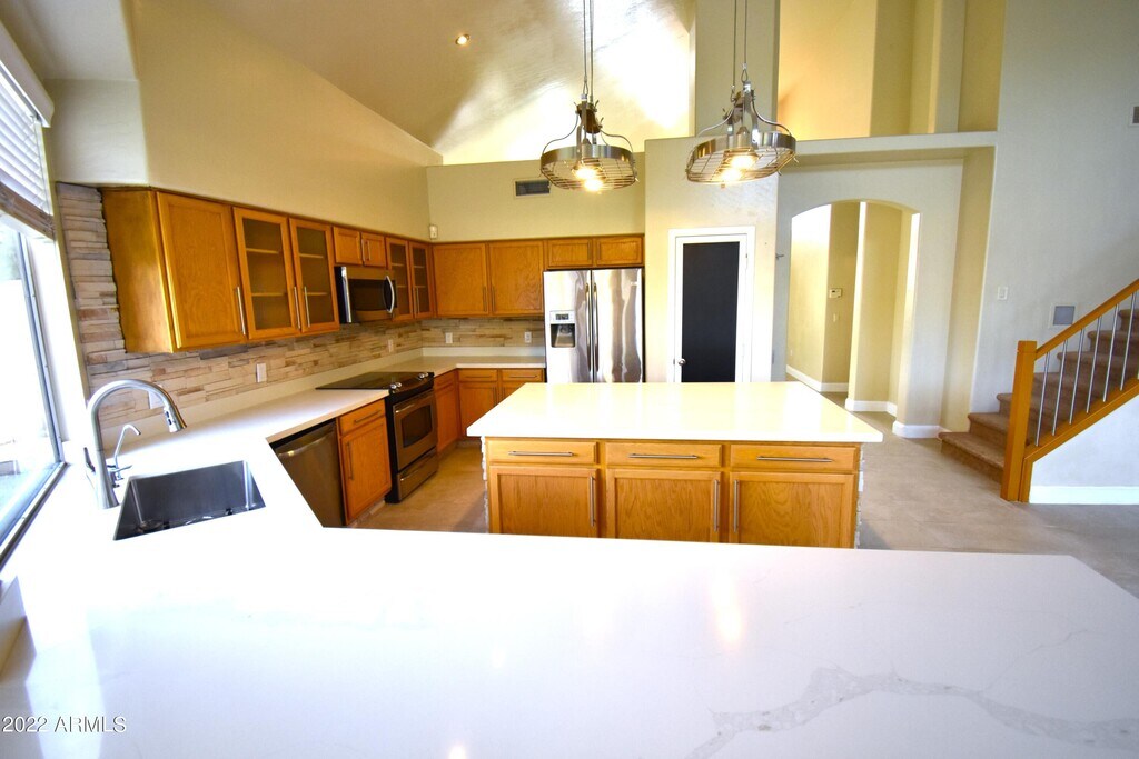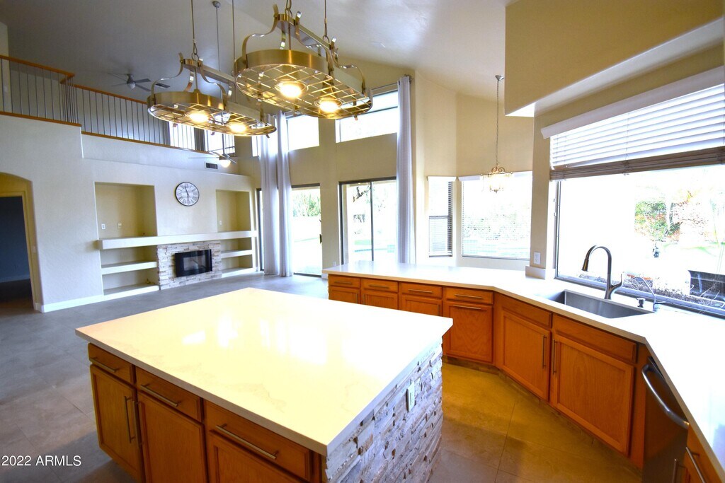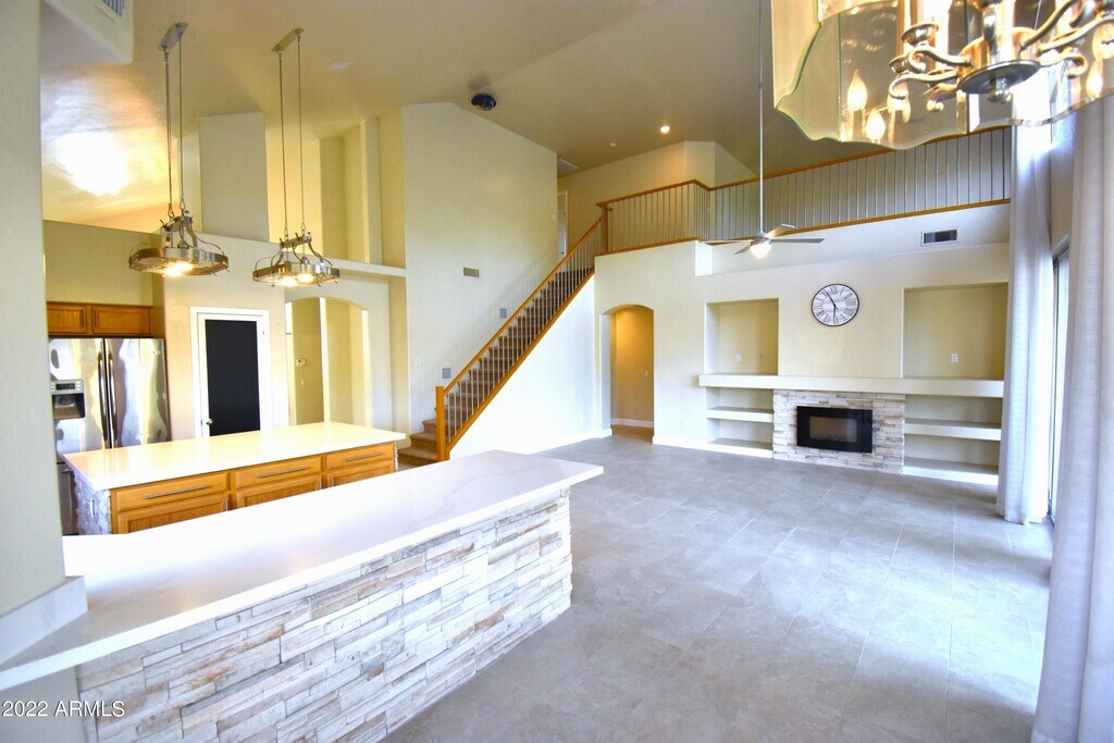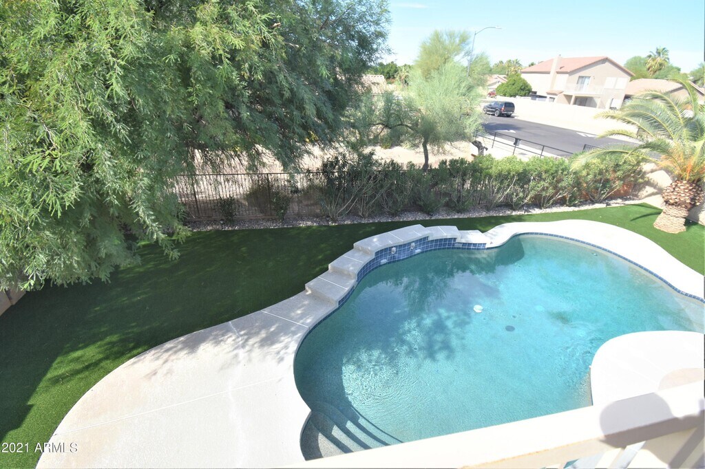 Experience modern luxury living with stunning mountain views in this updated 4 bed 3 bath home with loft. Featuring a low-maintenance front yard and soaring ceilings,the open and spacious family room and kitchen are perfect for entertaining. The primary suite boasts a remodeled luxury-style bathroom,while the loft leads to the balcony overlooking the family room. Enjoy the diving pool and extended patio or park your toys on the side yard pad through the RV gate. Conveniently located near major highways for easy access to all that Phoenix has to offer.