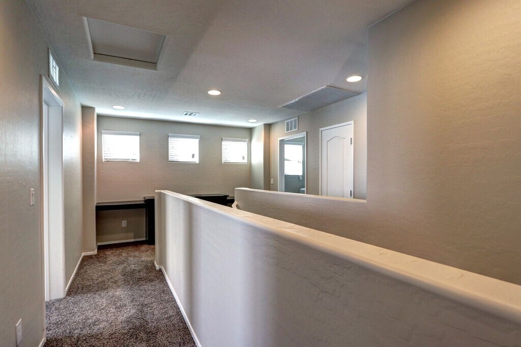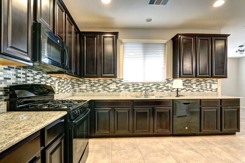 Terrific TWO STORY 3BDRs & 2.5BTHs HOME in Mountain's Edge. Entry reveals bright & open layout w/joined Family & Dining Rms enhanced w/neutral tile flooring. Galley style kitchen w/dark cabinets, granite cnts, backslash, black appliances & pantry. All BDRs are upstairs plus Laundry & built-in desk. Large MBD & en suite w/double sink, tub & separate shower. Finished backyard w/covered patio. Situated near community pool, park, walking trails & playground. *Tenant to pay additional $55.00 sewer/trash monthly* **If application approved with pets, additional deposit required**