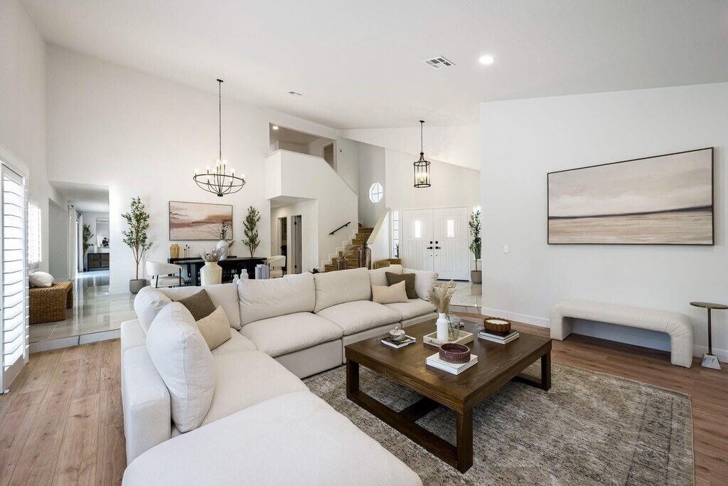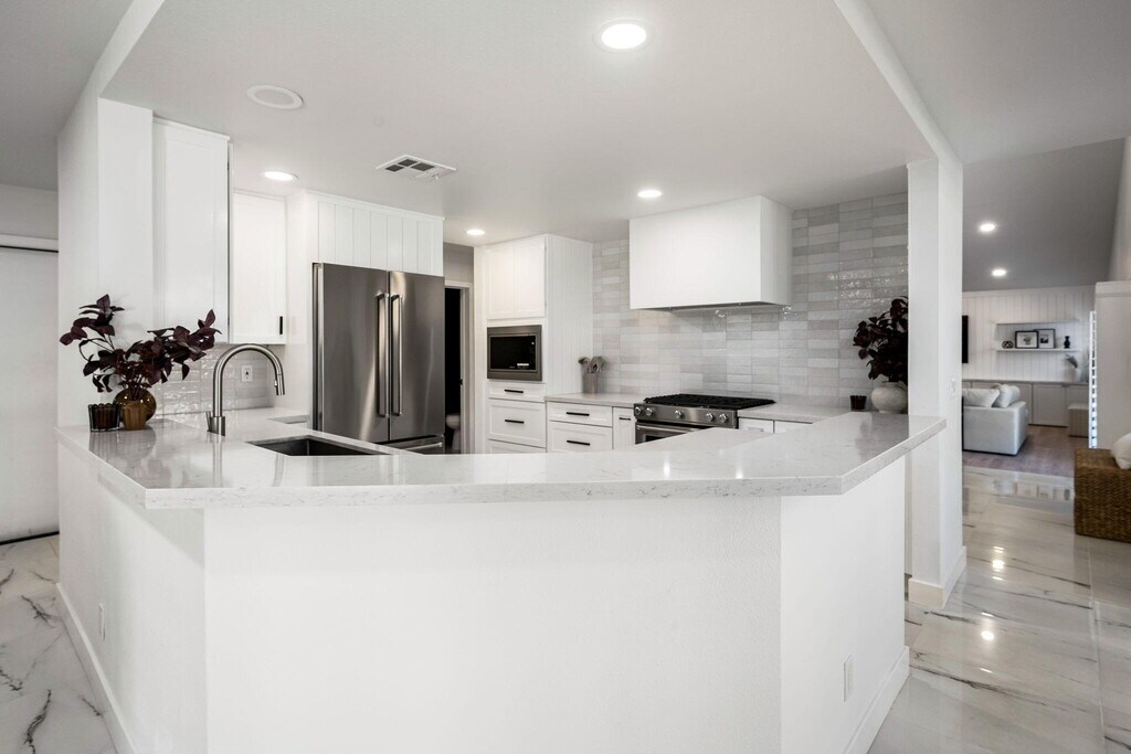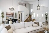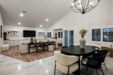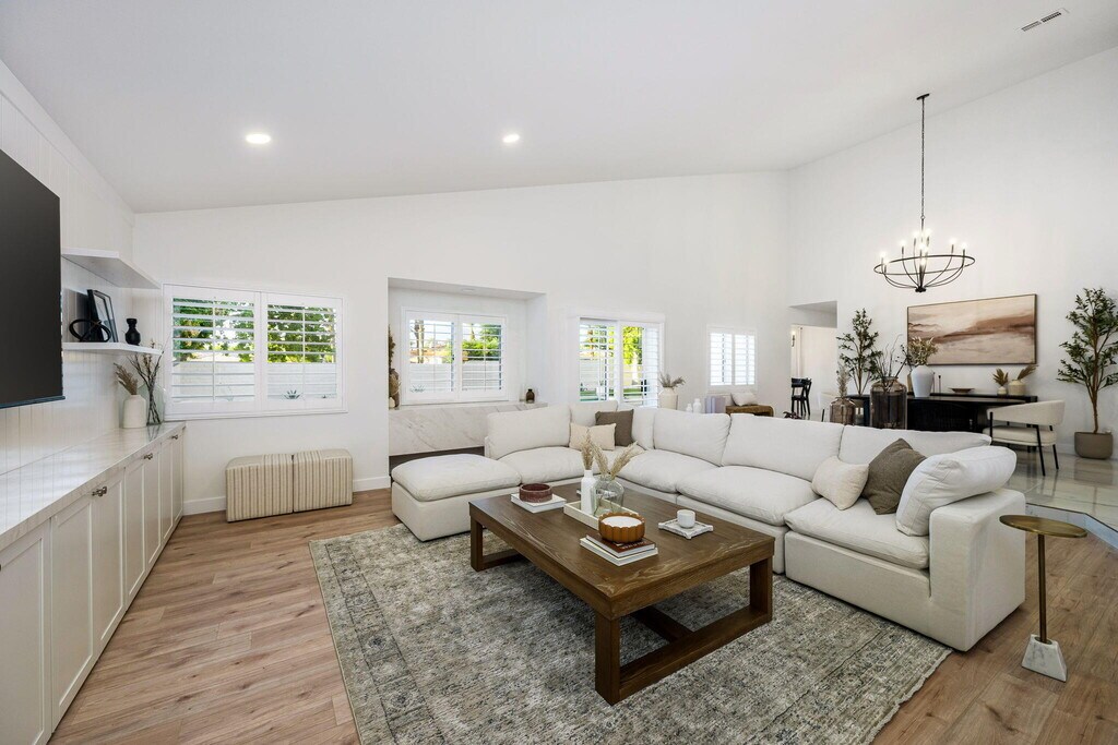 This completely remodeled and reimagined single-family home offers 2,793 square feet of modern living space with five bedrooms (PRIMARY & GUEST ARE DOWNSTAIRS) and three and a half bathrooms. Situated on a spacious lot of over a quarter acre in Regency Palms,it provides plenty of outdoor space to enjoy desert living at its best.No detail has been overlooked in the renovation. The home now features all-NEW bathrooms,a brand-NEW kitchen with NEW appliances,NEW flooring throughout,2 NEW air conditioners,a NEW water heater,fresh NEW paint inside and out and a NEW pool heater .The floor plan is ideal for families or anyone who wants extra space. The PRIMARY suite is located on the MAIN FLOOR,offering convenience,privacy,and comfort. It includes a walk-in closet and a large spa-like bathroom with dual sinks,a separate shower,and a soaking tub. The open kitchen is a chef's dream,with stainless steel appliances,a gas stove,and a breakfast nook for casual dining. A separate formal dining area is perfect for hosting family and friends. Step outside to your private backyard retreat with mountain views,a heated pool and spaperfect for entertaining or unwinding after a long day. Additional features include a separate laundry room,central A/C,and a security system. All of this is located in a quiet Palm Desert neighborhood with excellent schools,just minutes from shopping and dining on El Paseo.