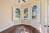 Luxurious Living Awaits: Nestled in coveted Hickory Springs, discover a single-story haven where convenience meets custom design. Designed with entertaining in mind this open concept 3-Bed, 2-Bath home boast Beautiful Hardwood floors as you enter the grand foyer that leads you to the spacious sized dining room. French doors lead to the private office. Culinary dream kitchen with Custom Cabinets, Gas Range, farm sink, under cabinet lighting and an abundance of granite countertops. Breakfast area is open to a Stone Fireplace-warmed living room with large windows that bring in plenty of natural light. Private retreat: Split bedroom layout for individual privacy your primary suite has a tray ceiling, windows look out to greenbelt and ensuite bath with over-sized shower and walk-in closet. Plantation shutters, crown molding add elegance. Two more generous guest suites share an updated bath. Serene Outdoors: You will love this backyard oasis! Not only do you not have someone living to the side of you, but the backyard also backs up to a greenbelt with covered patio and iron fencing and walking path that winds throughout the neighborhood. Relax in private Community pool. This home is located close to shopping, employers, hospitals, great restaurants and top-rated schools.