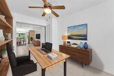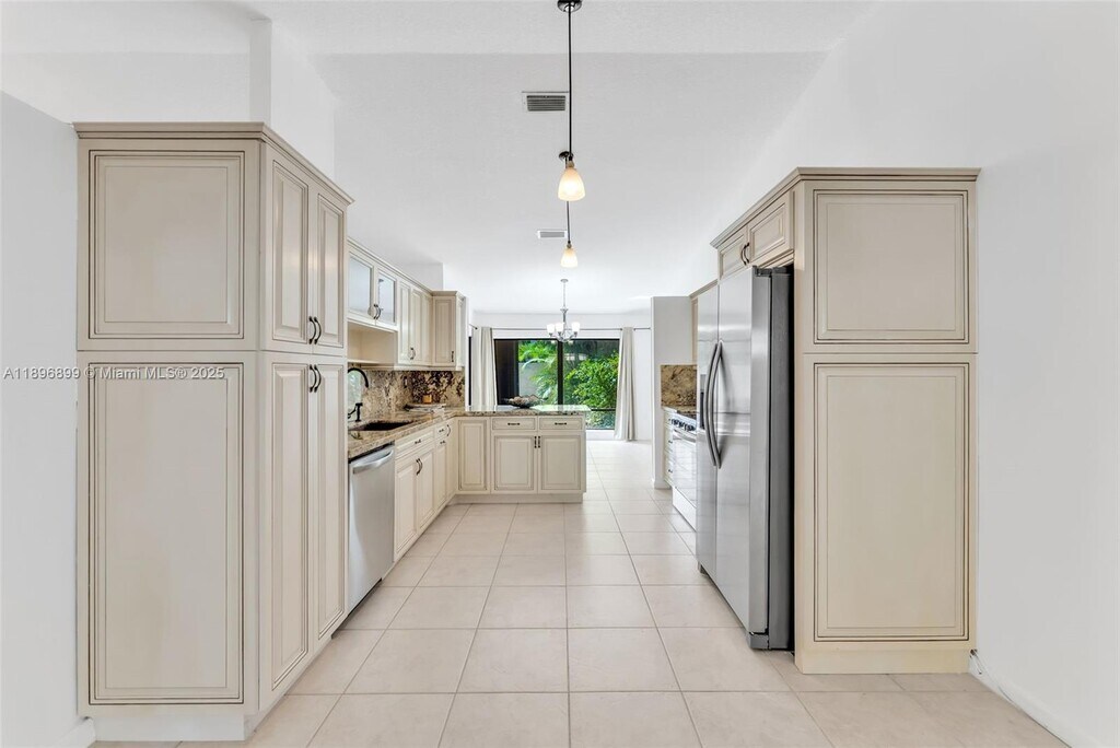 Beautifully remodeled one-story 3-bedroom, 2-bath corner villa in the desirable KendallTown community. Features open-concept living with vaulted ceilings, tile floors throughout, and no popcorn ceilings. Includes a spacious additional room ideal for an office or playroom, brand new A/C, and tankless water heater. The kitchen offers wood cabinets, granite counters, and new stainless steel appliances. Bathrooms are fully updated with modern vanities. Accordion shutters throughout. Enjoy a private screened patio, fenced backyard, detached storage shed, and 2-car driveway. Community amenities include a clubhouse, heated Olympic pool, jacuzzi, kids pool, playground, tennis, pickleball, racquetball, 24-hour security, and proximity to shops, highways, and top schools.