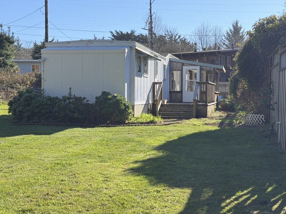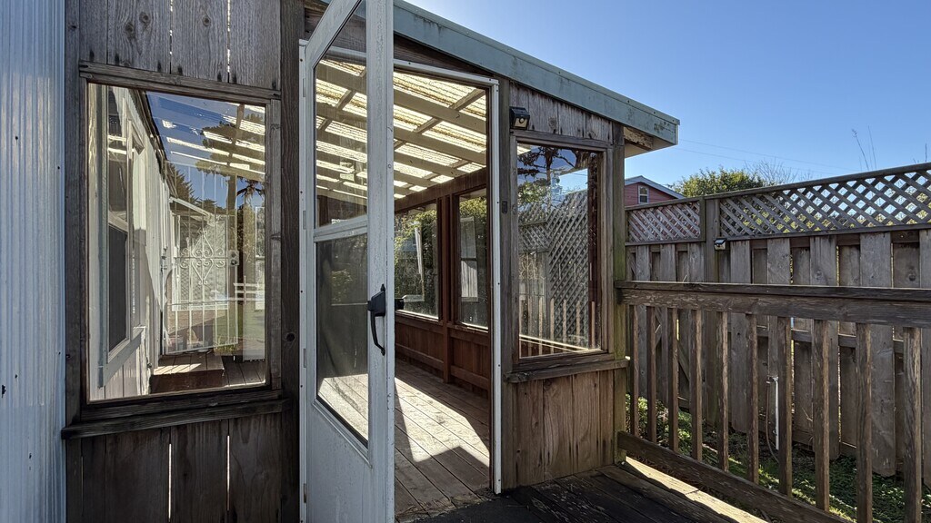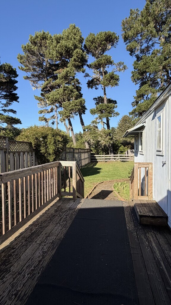 Privacy on fenced lot off set from the main road. Sun exposure and green space. A retro mobile with nice bright sunroom and decking. 1 bedroom plus second smaller bedroom or office space. One bathroom with tub. Quieter spot, biking distance to Trinidad and the local beaches. A must see to appreciate. Owner maintains lawn. Tenants may use and maintain raised garden bed. 769 1/2 Stagecoach rd. Trinidad Tenants pay propane. Owners pay Electricity up to $100 per month/Garbage/Recycling Washer and dryer hookups. No Smoking Renters insurance required. 1 cat considered. Application required at prior to viewing.Available Feb 1. Frankie Kelly-Cardoso Casa Nova Realty Group McKinleyville Ca 95519 DRE # 01983268 Spaciouse Mobile with yard Trinidad